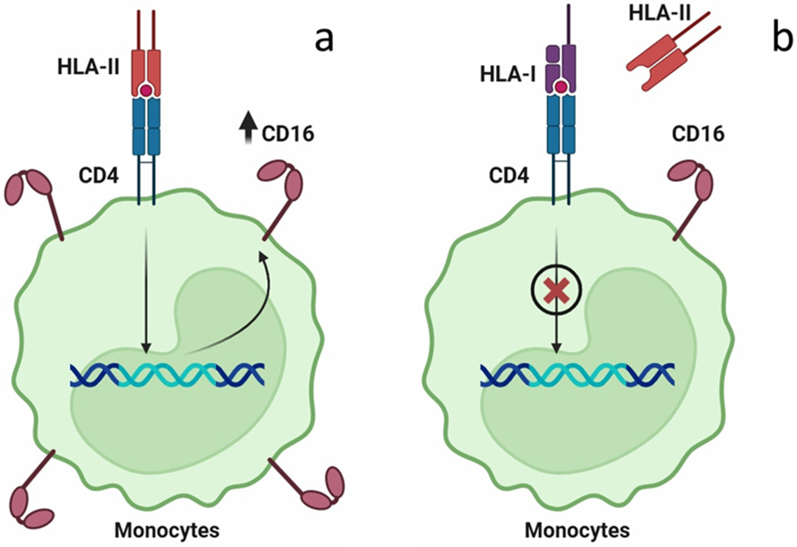 2.3. The Effect of HLA Class I (HLA-B) on CD16 Expression on Monocytes