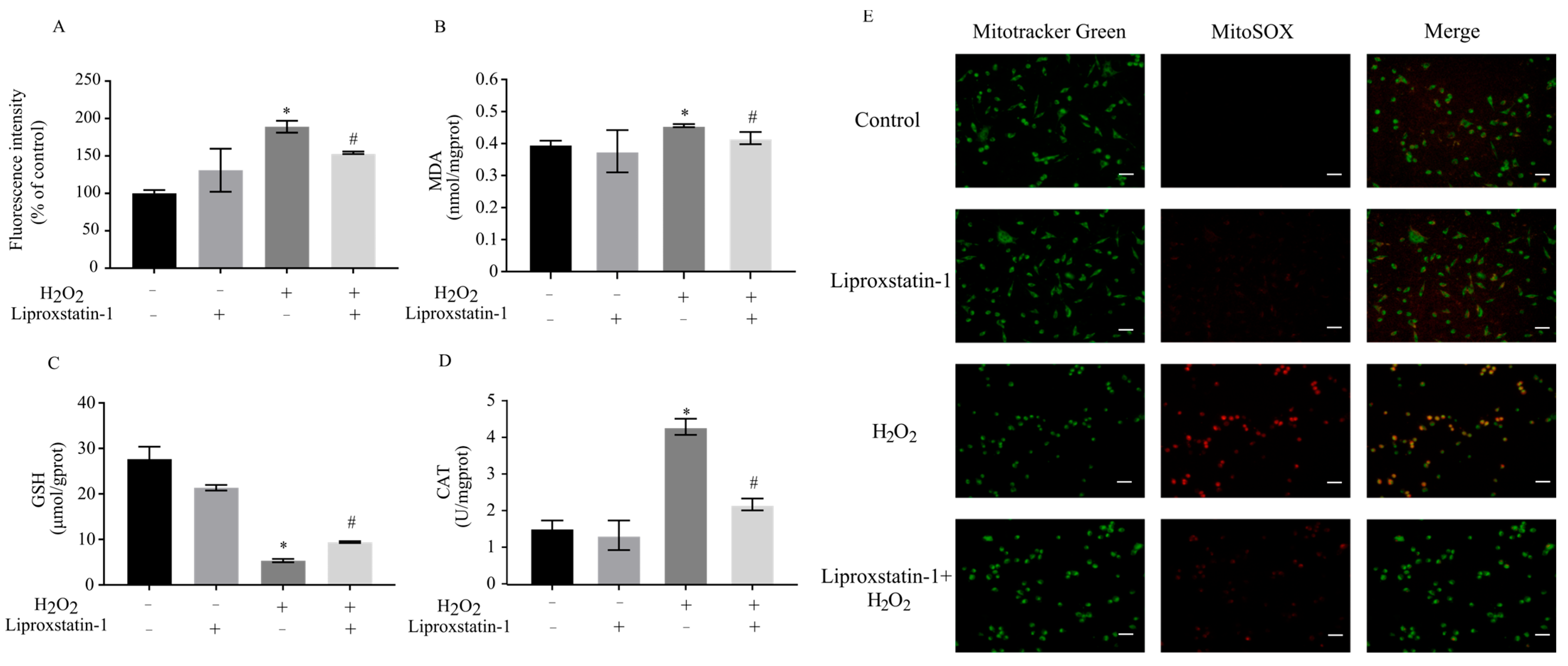 2.2. Liproxstatin-1 Attenuates Oxidative Stress in H2O2-Treated SH-SY5Y Cells