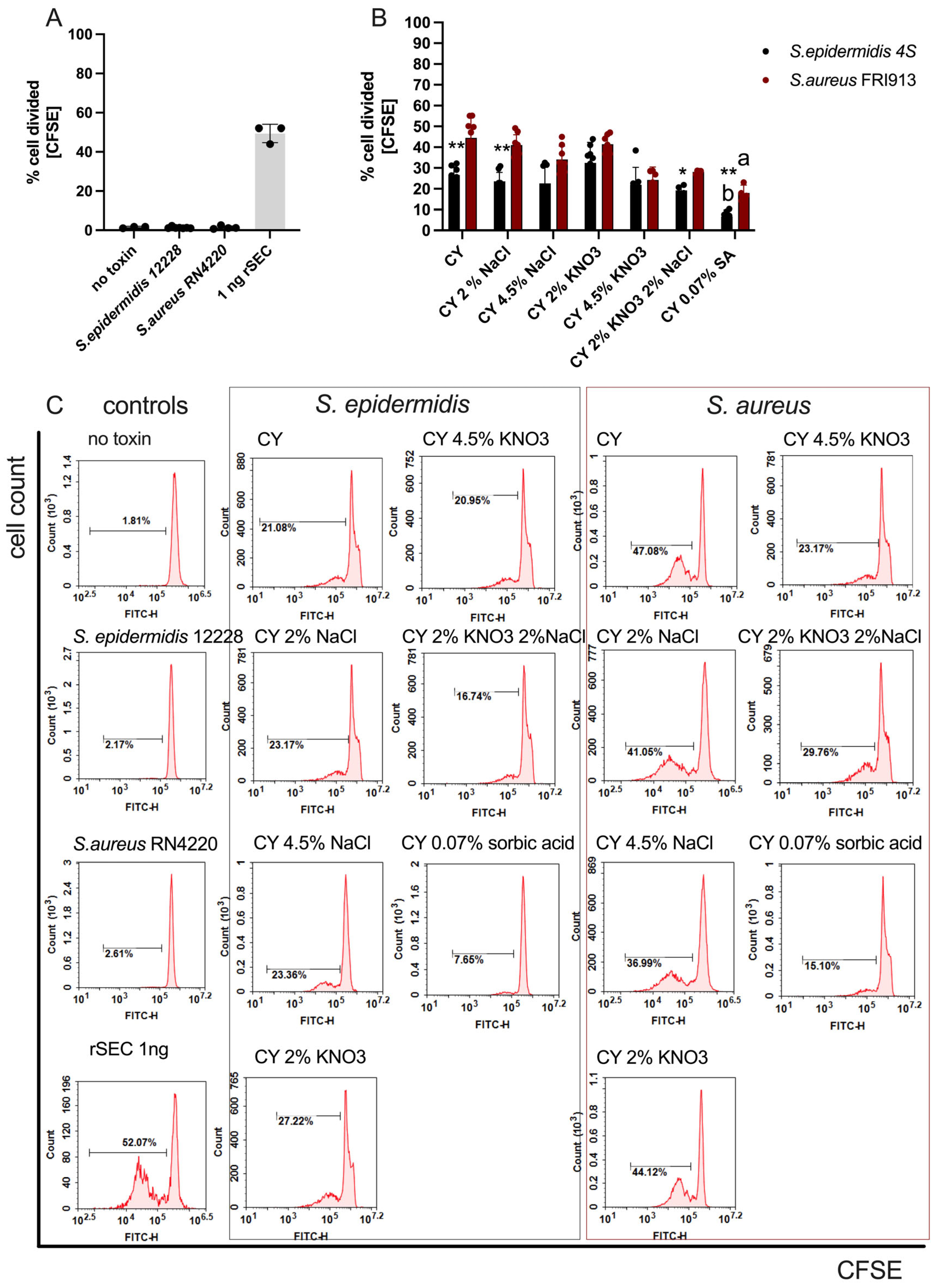 - Lee, J.; Park, N.; Park, J.Y.; Kaplan, B.L.F.; Pruett, S.B.; Park, J.W.; Park, Y.H.; Seo, K.S. Induction of Immunosuppressive CD8+CD25+FOXP3+ Regulatory T Cells by Suboptimal Stimulation with Staphylococcal Enterotoxin C1. J. Immunol. 2018, 200, 669–680. [Google Scholar] [CrossRef] [PubMed]