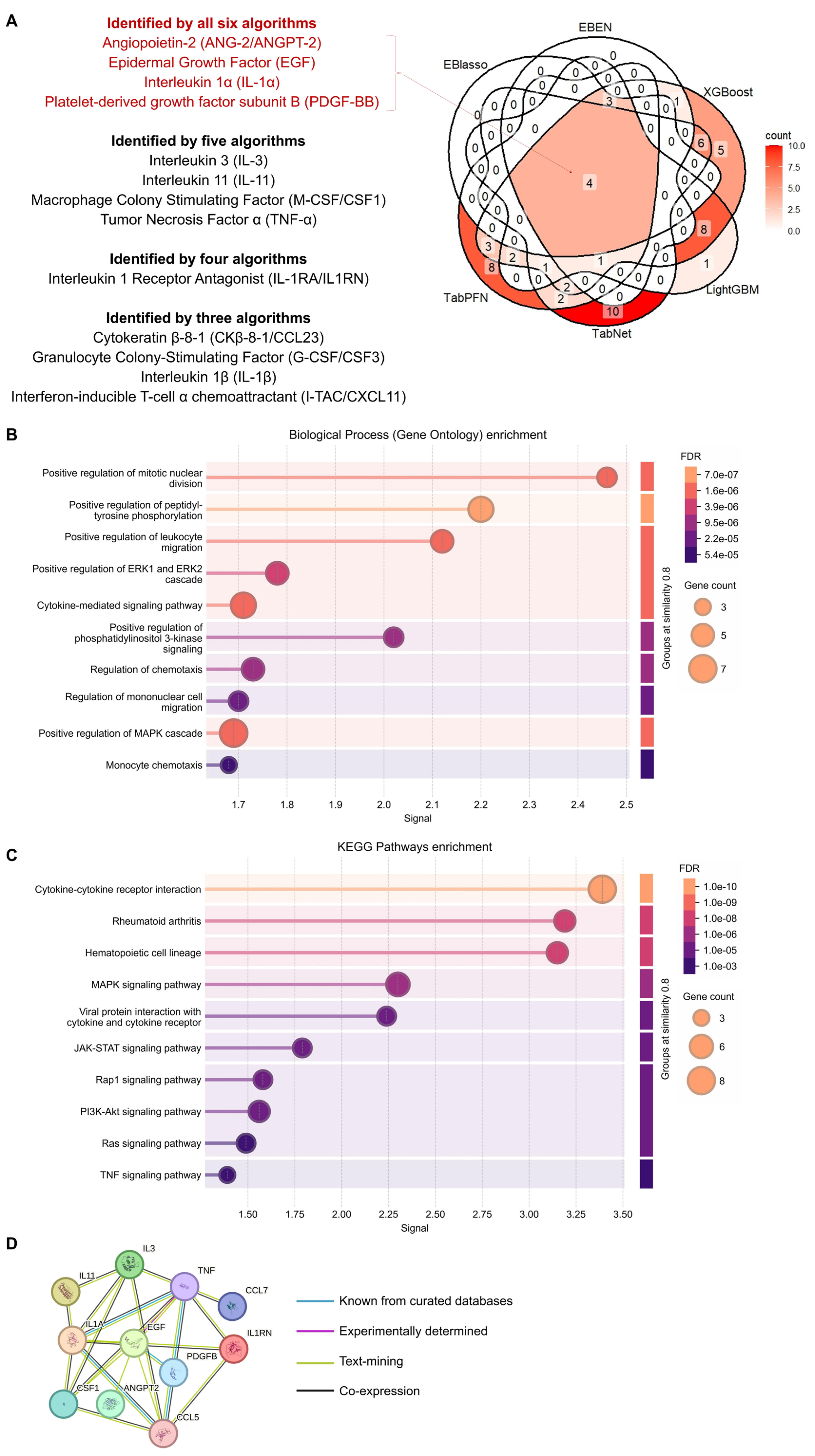 4.4. GO and KEGG Pathway Enrichment and Network Analysis of the Overlapping Proteins