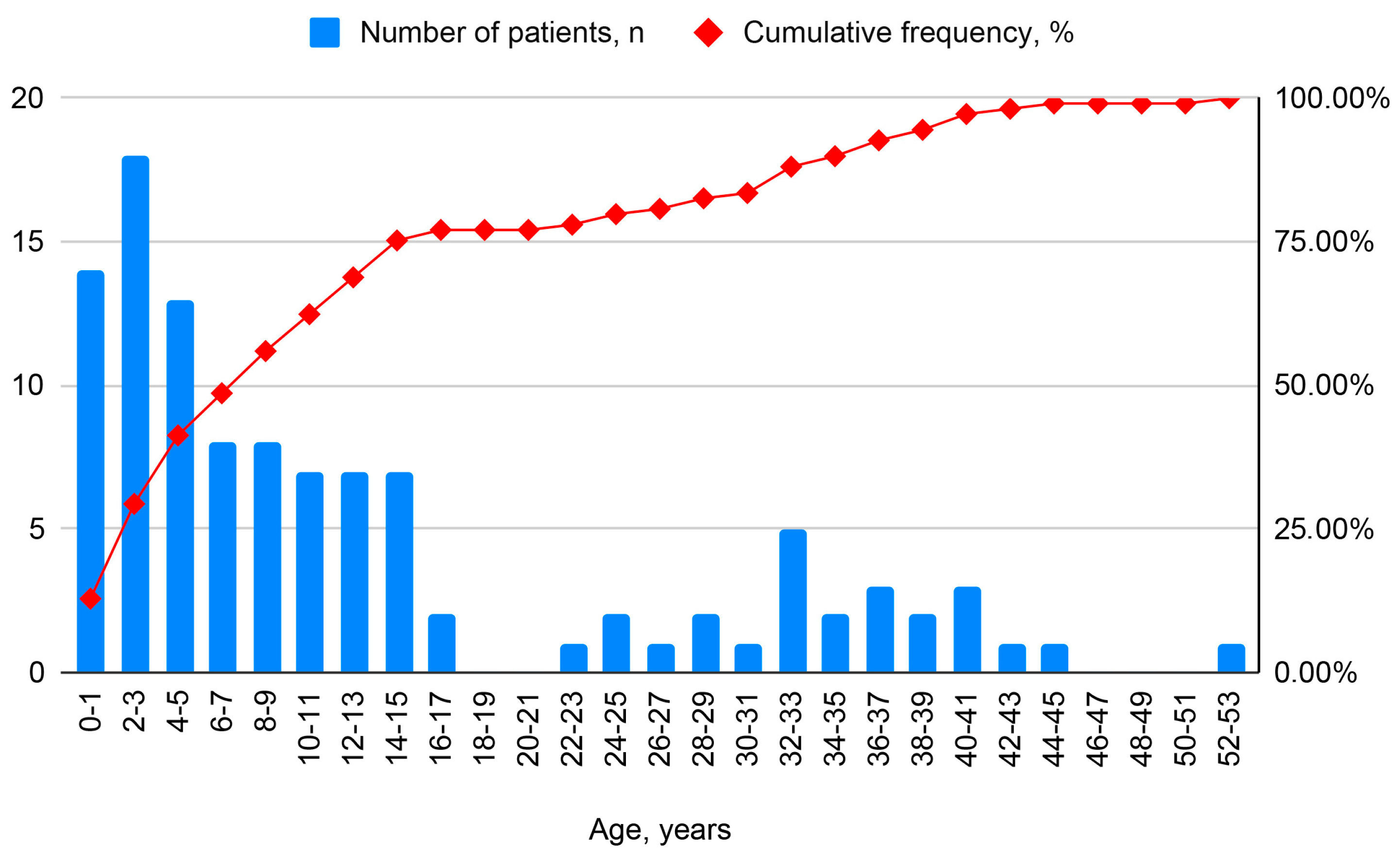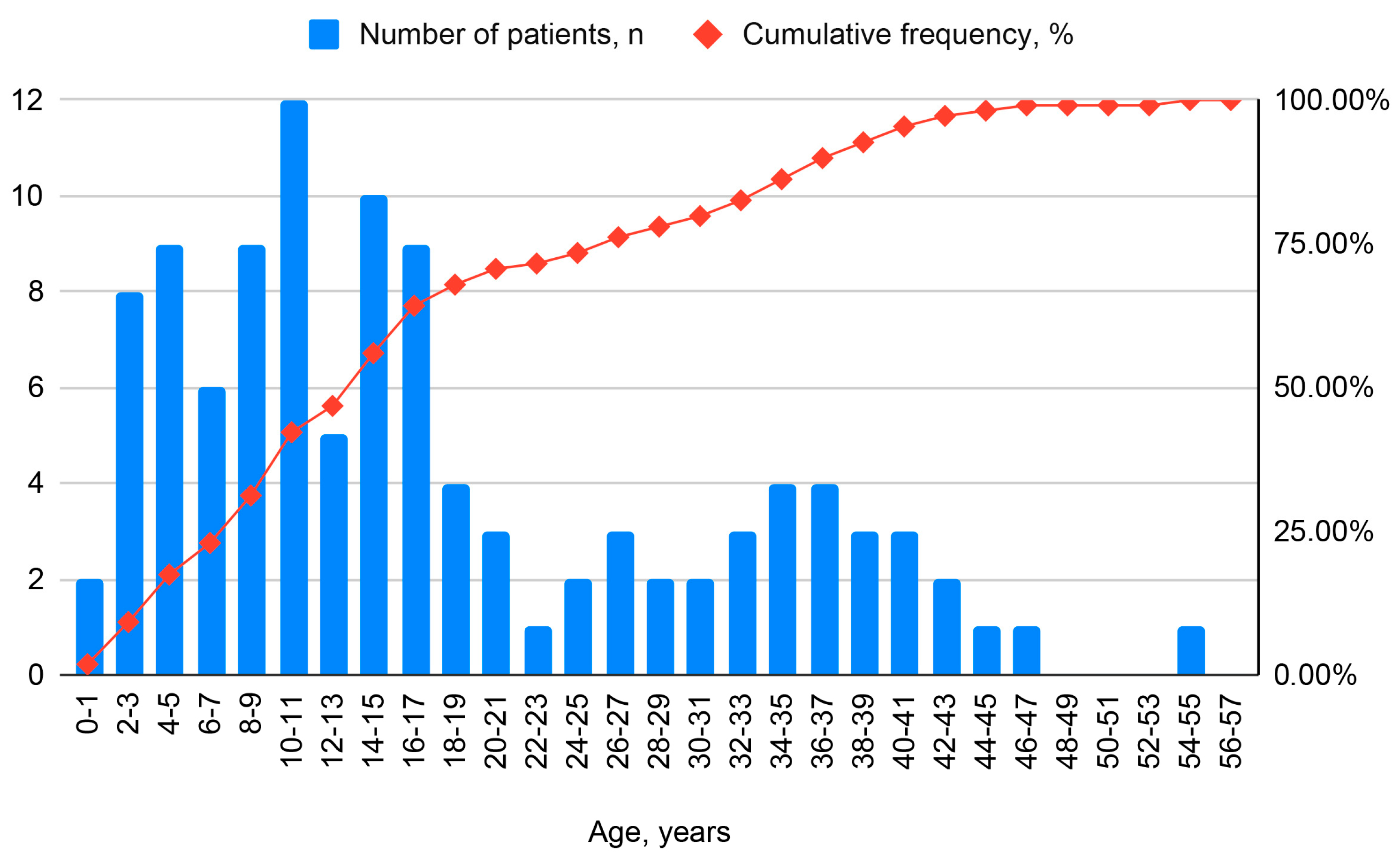 | Age at diagnosis, years | |||