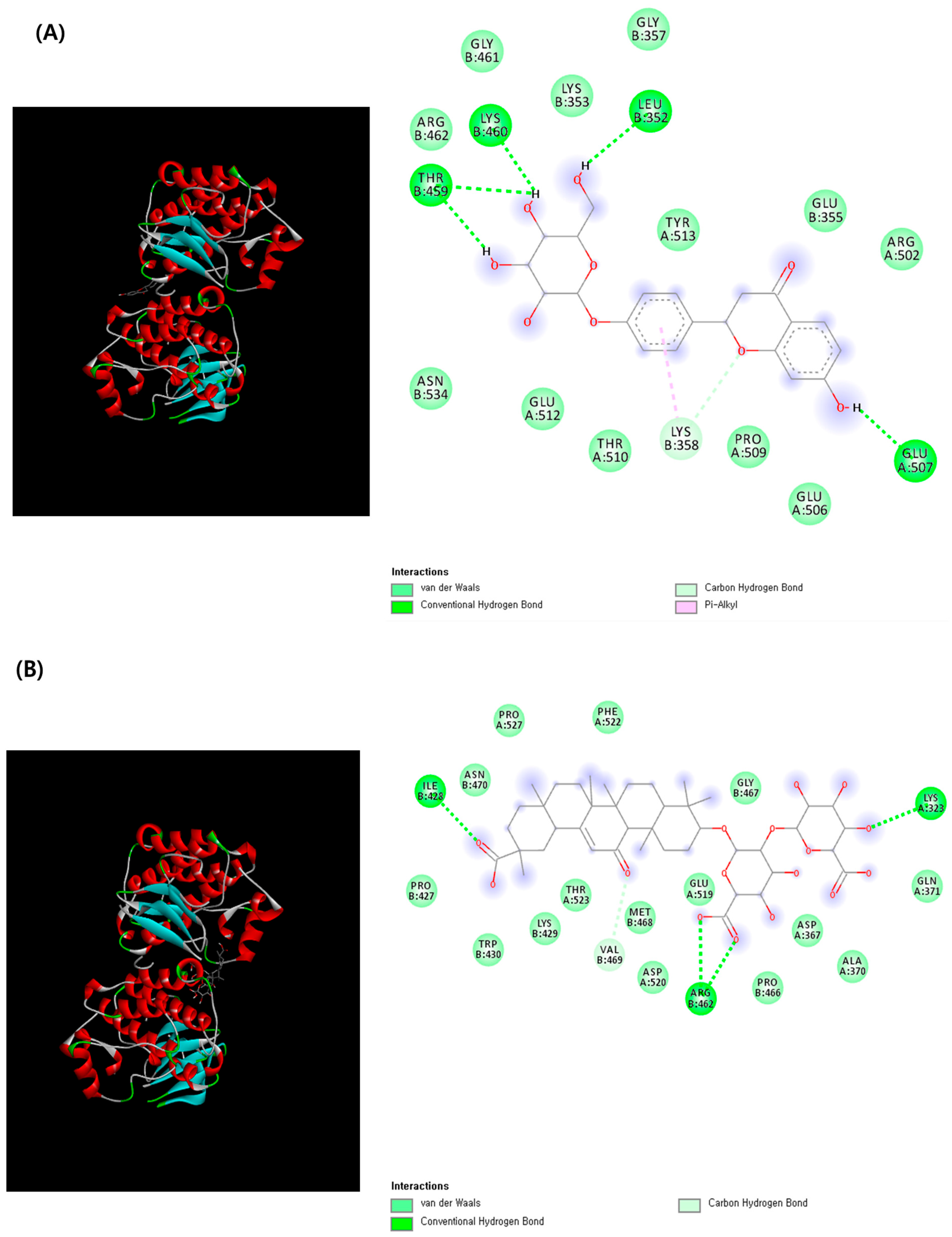 2.6. Prediction of Toxic Targets of Liquiritin and Glycyrrhizin and Molecular Docking Analysis