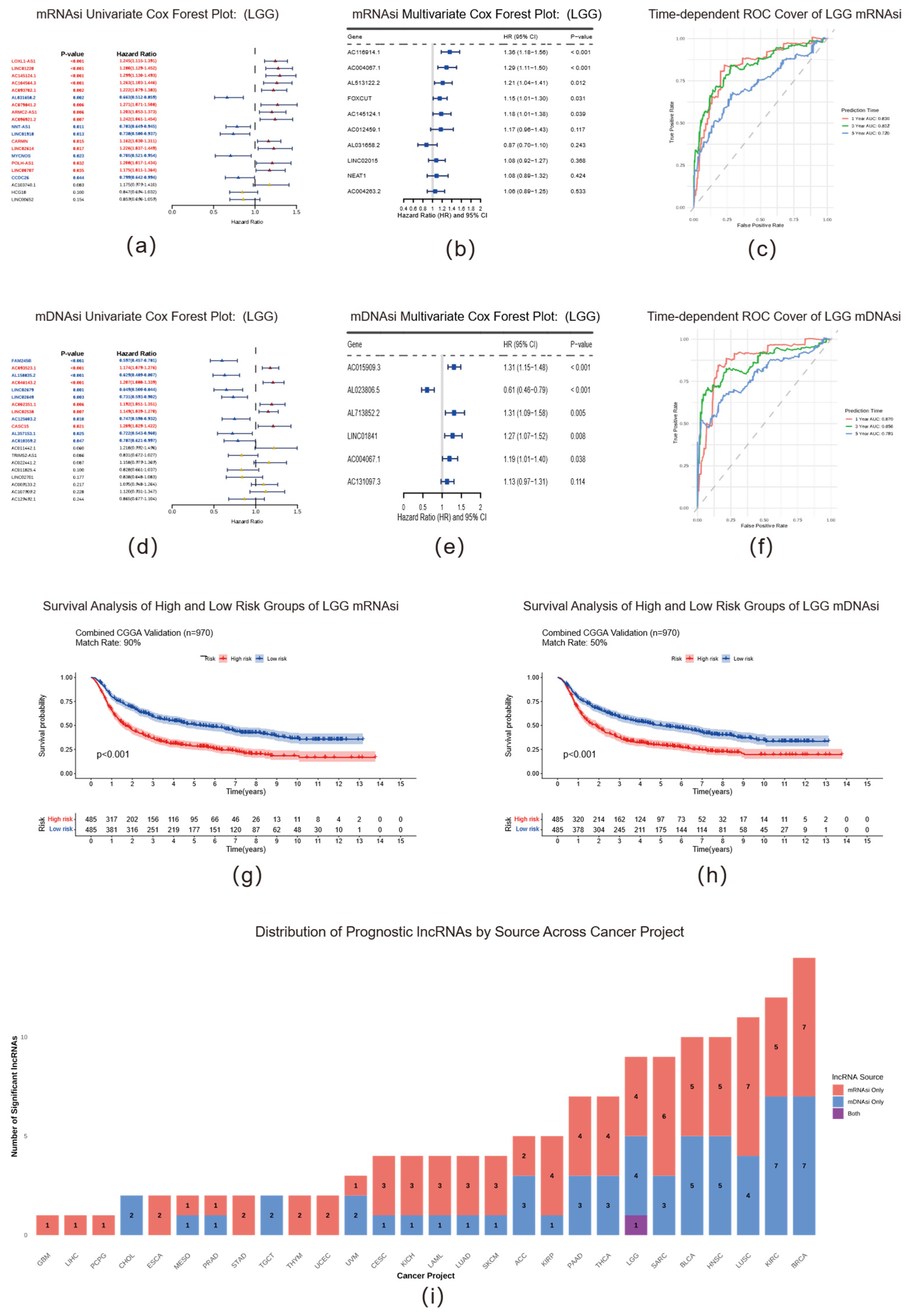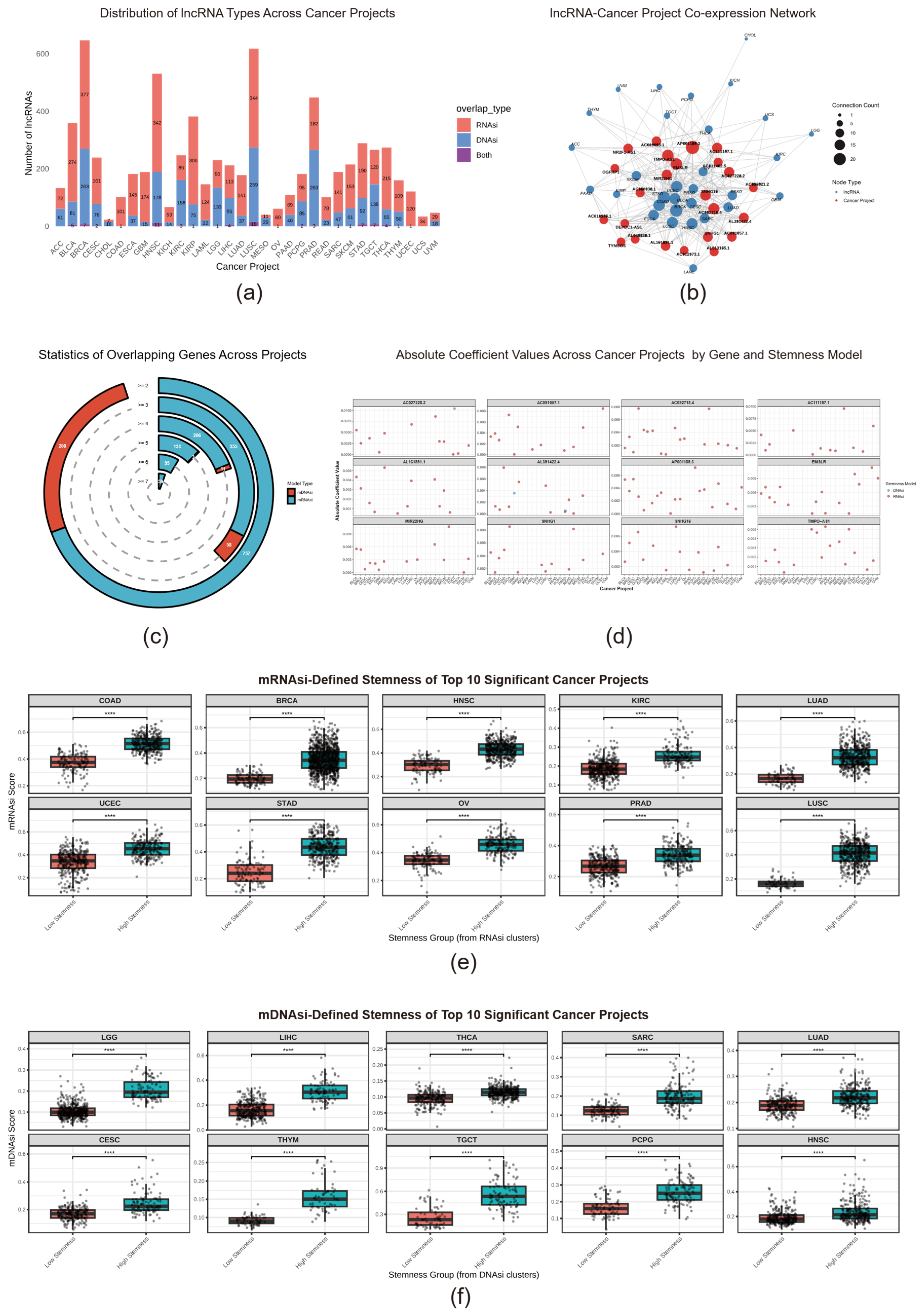 2.1. A Pan-Cancer Landscape of lncRNA Signatures Associated with Tumor Stemness