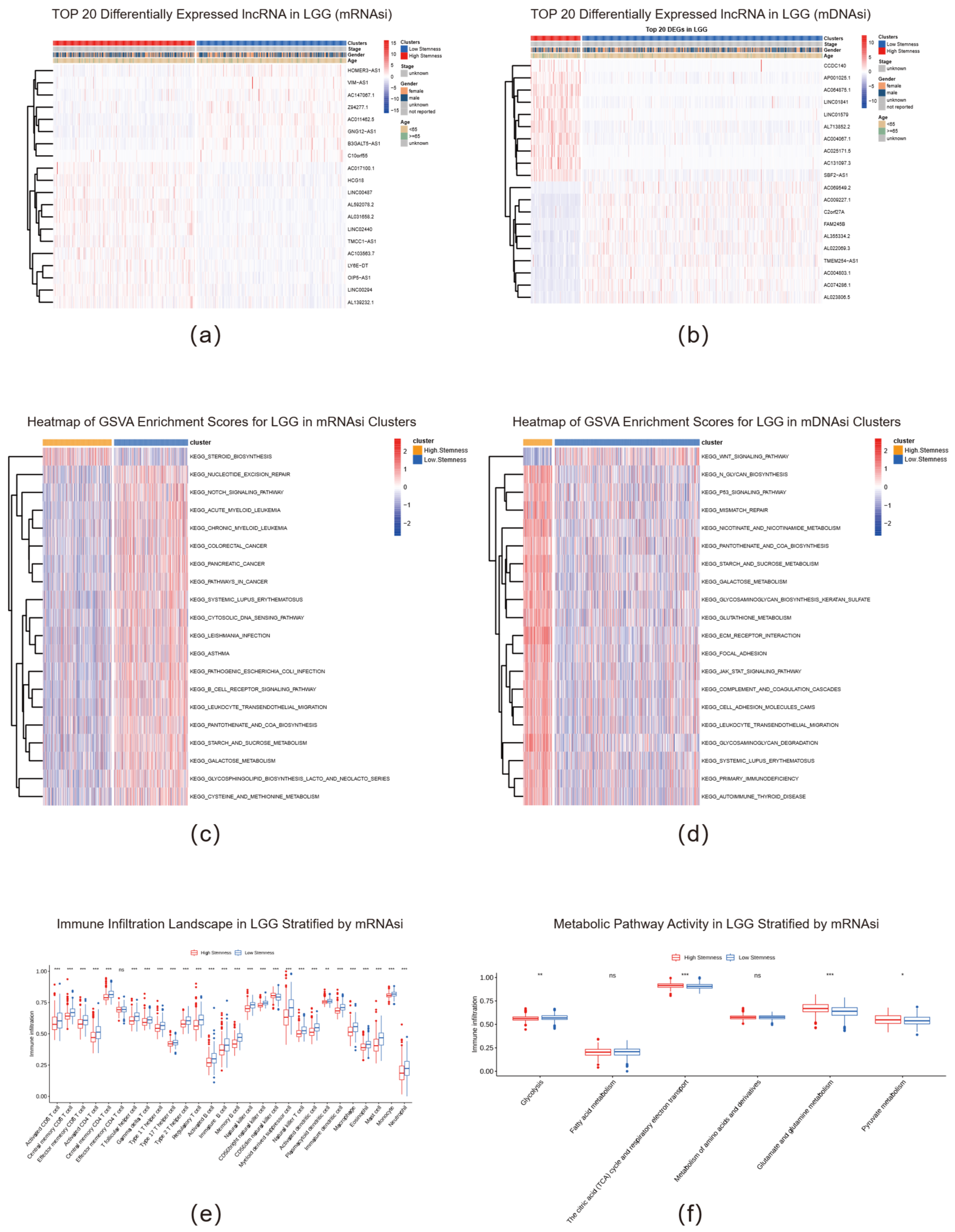 - Liu, J.; Yao, L.; Yang, Y.; Ma, J.; You, R.; Yu, Z.; Du, P. A novel stemness-related lncRNA signature predicts prognosis, immune infiltration and drug sensitivity of clear cell renal cell carcinoma. J. Transl. Med. 2025, 23, 238. [Google Scholar] [CrossRef]