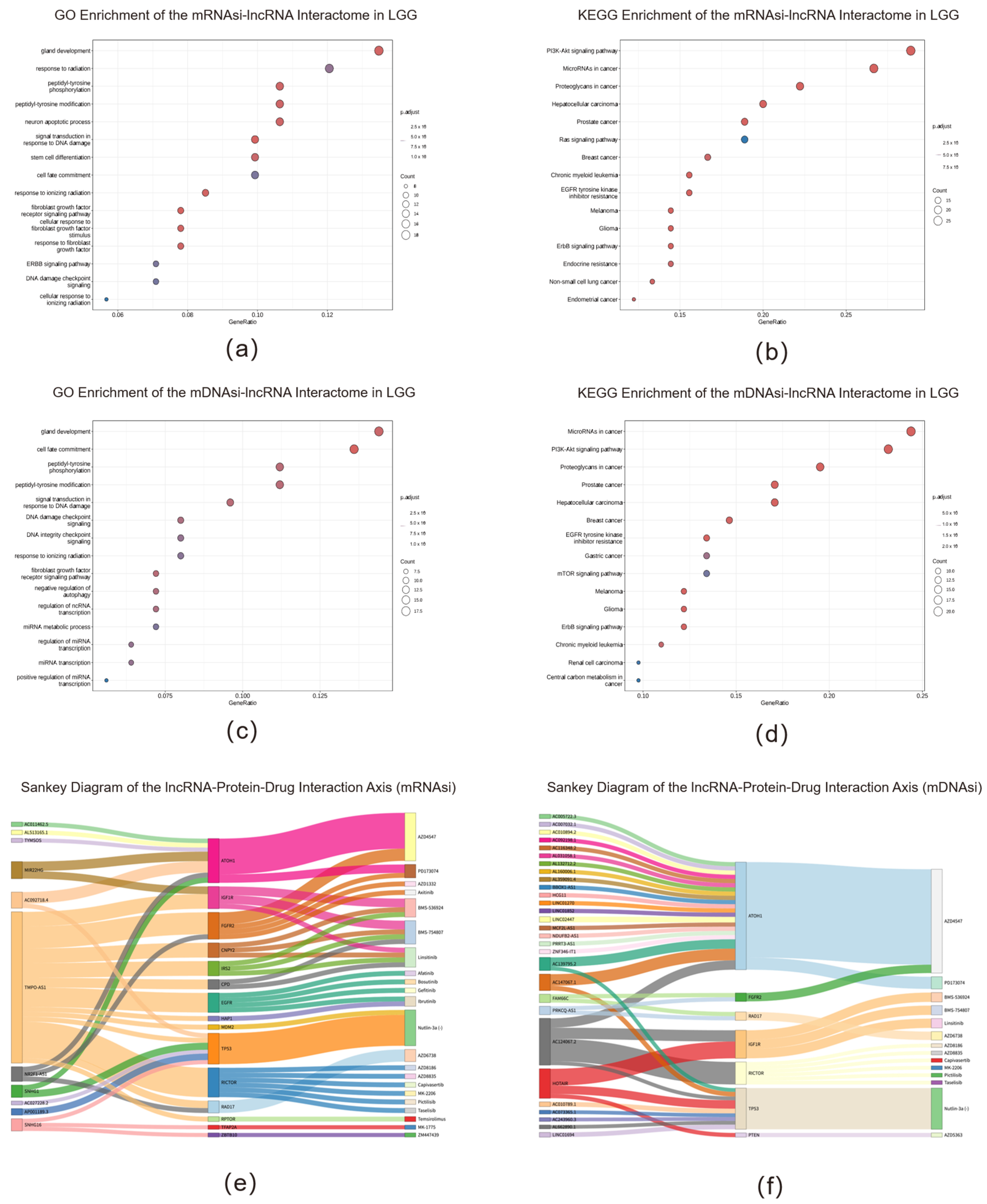 2.4. Stemness-Associated lncRNA Networks Converge on Core Oncogenic Pathways and Therapeutic Vulnerabilities