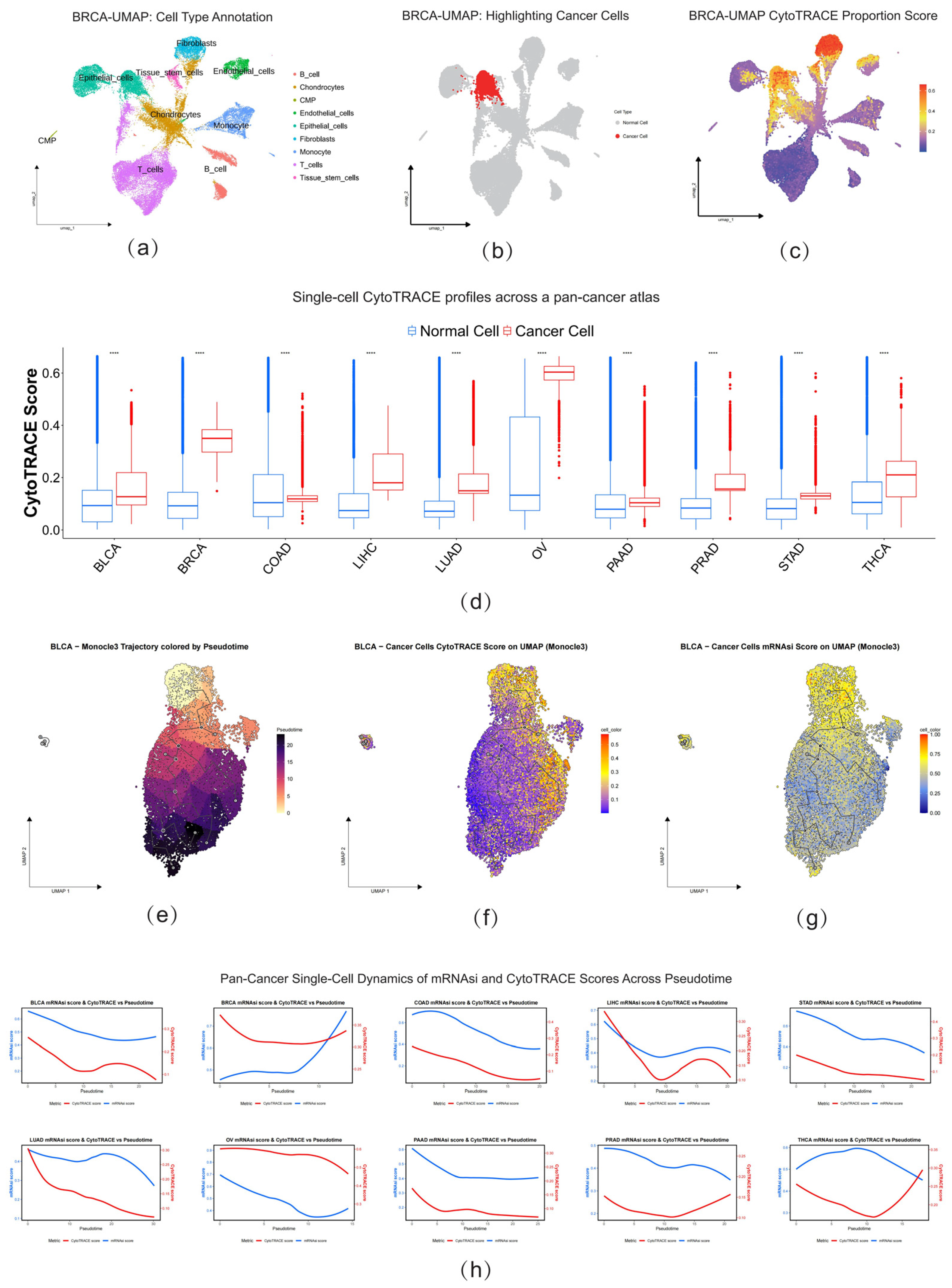 2.5. Single-Cell Analysis Reveals Tumor Stemness Differences and Unveils Their Dynamic Evolutionary Trajectories