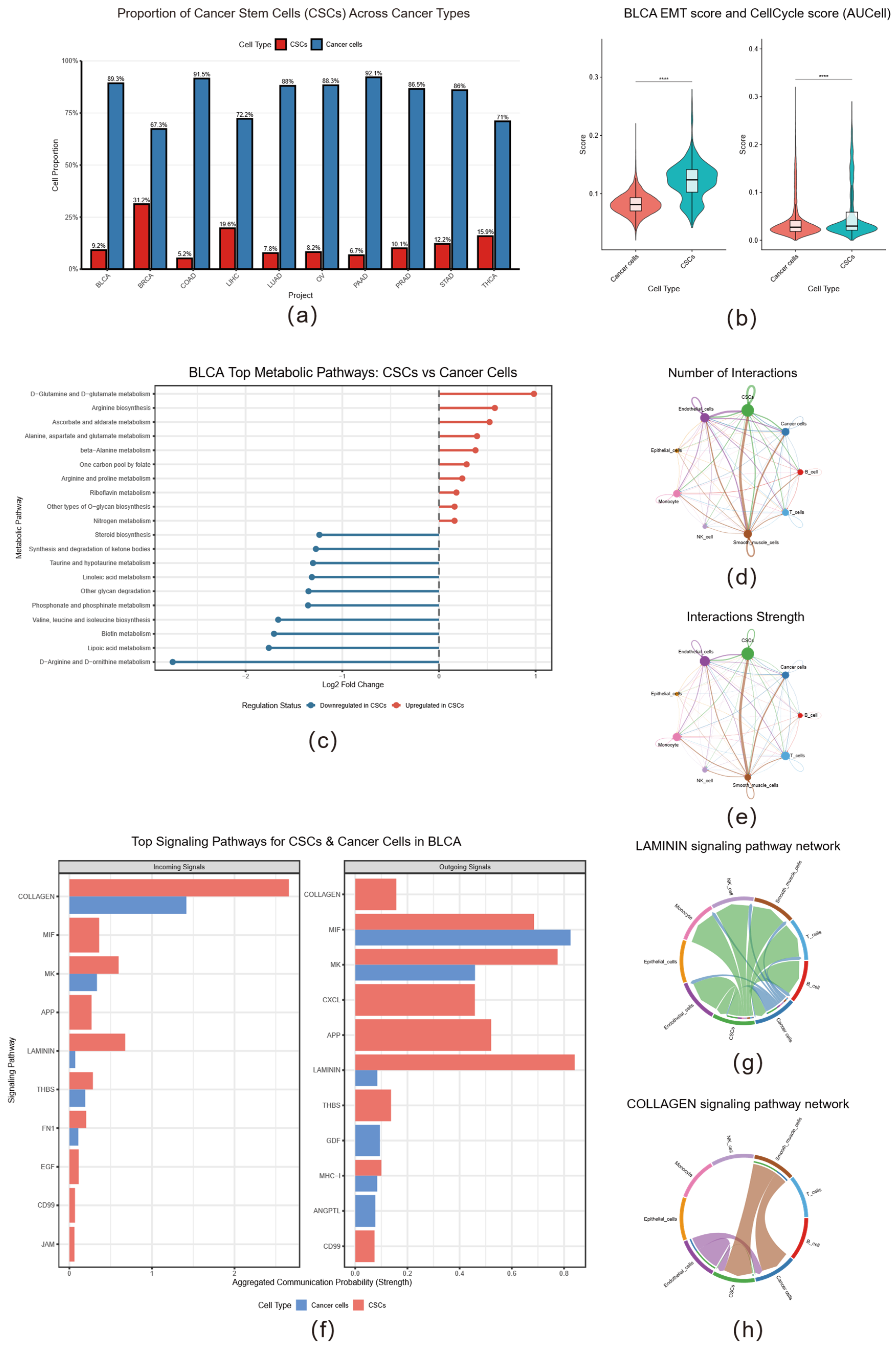 2.6. Metabolic Reprogramming and Dominant Cell Communication Roles of Cancer Stem Cells