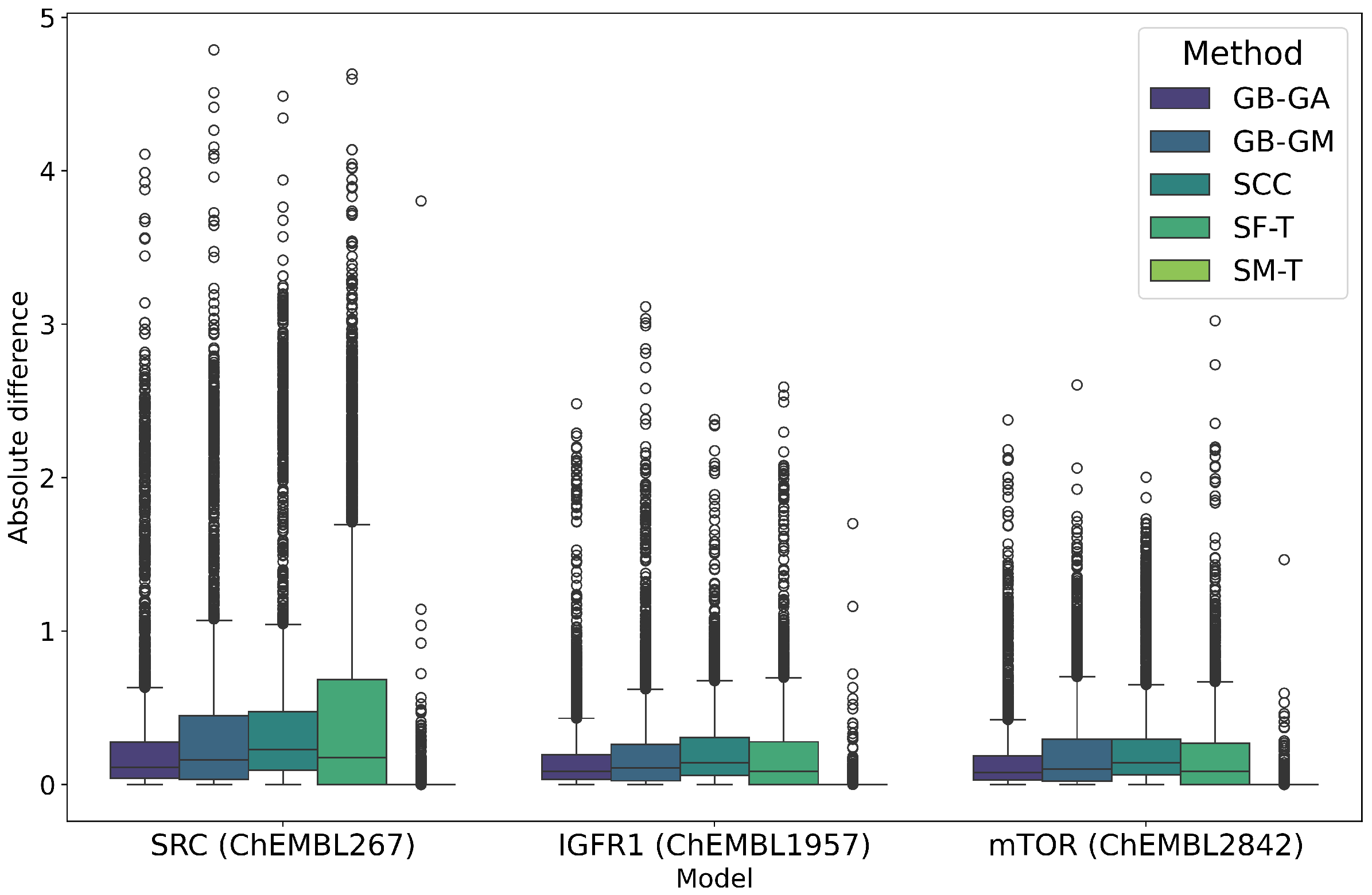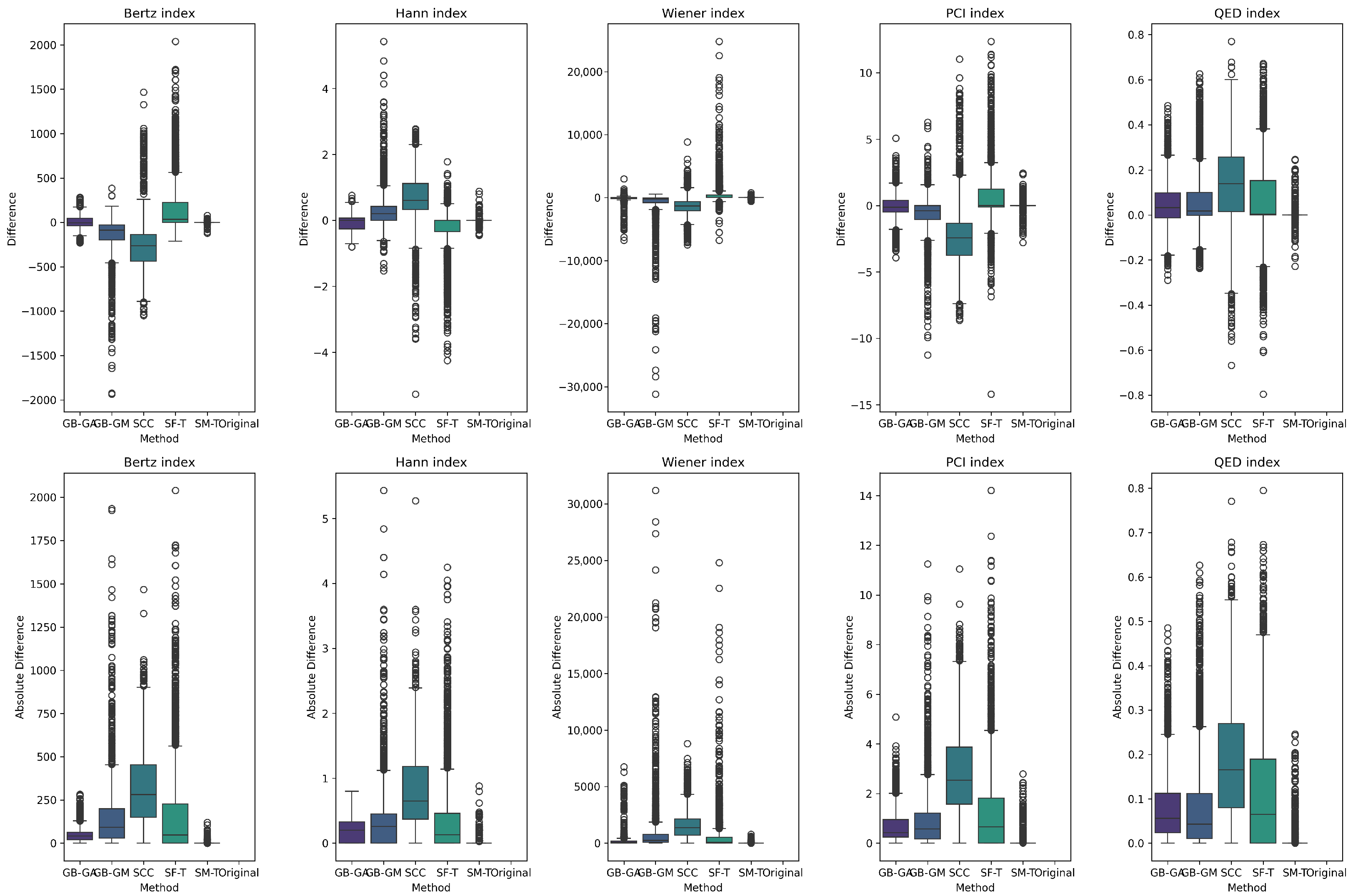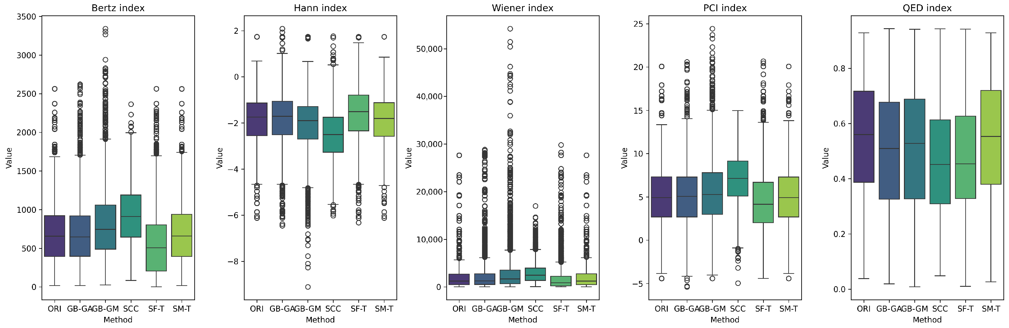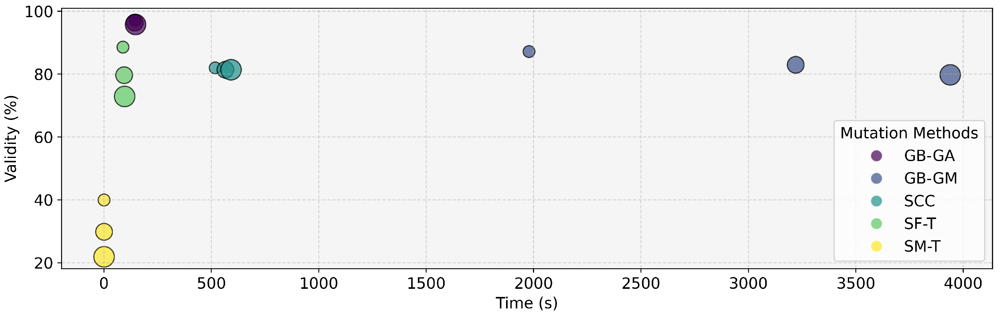 - We generate an actionable selection guide, in which we translate results into practical recommendations. For example, use GB-GA for fast, high validity local optimization; SCC for reaction-based growth with property shifts; SF-T for rapid, high-diversity exploration; GB-GM for data-consistent (often heavier) chemistries; and reserve SM-T for quick prototypes due to low validity.