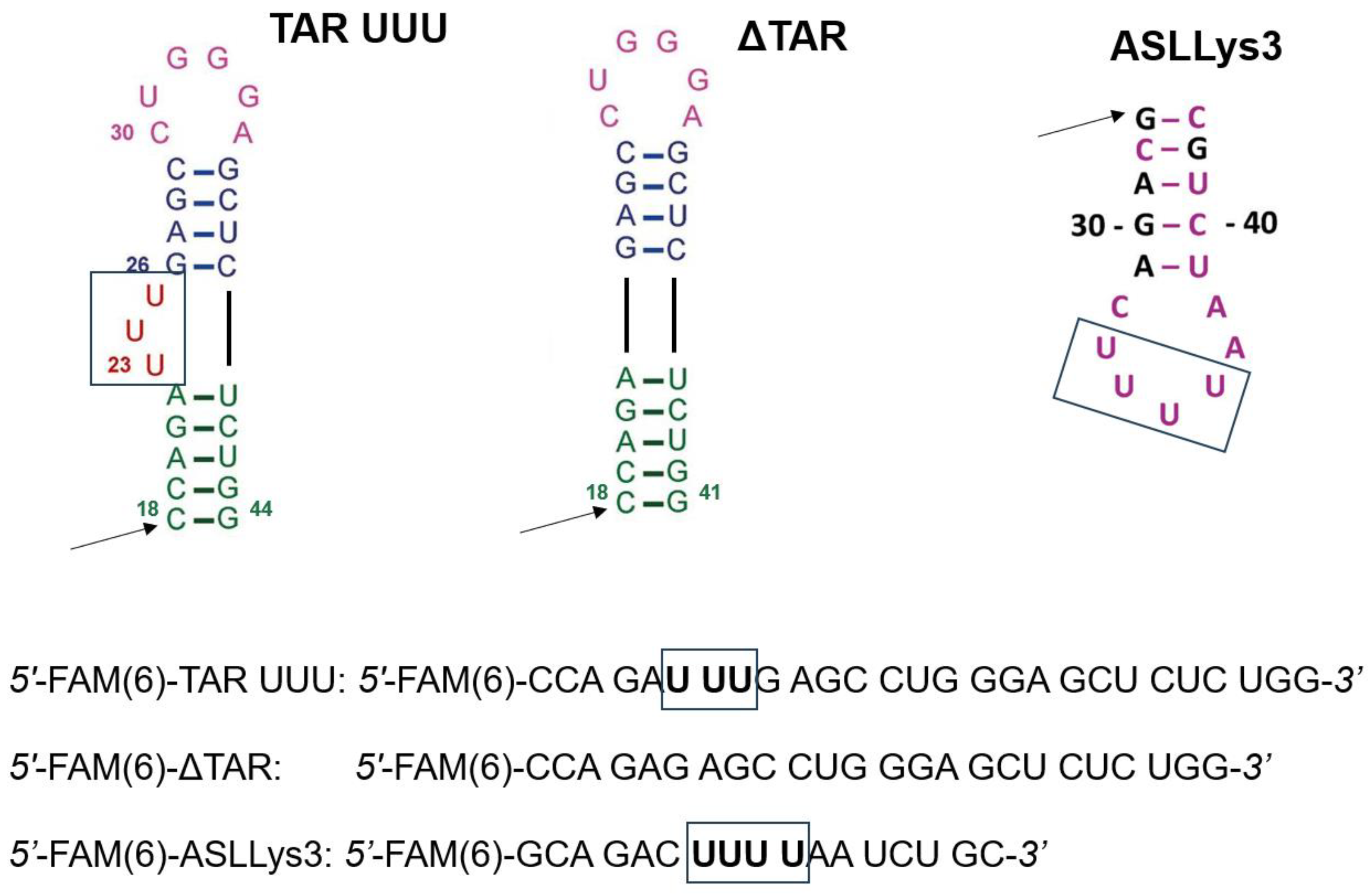 | ASLLys3 | unmodified anticodon stem–loop domain of human tRNALys3 |