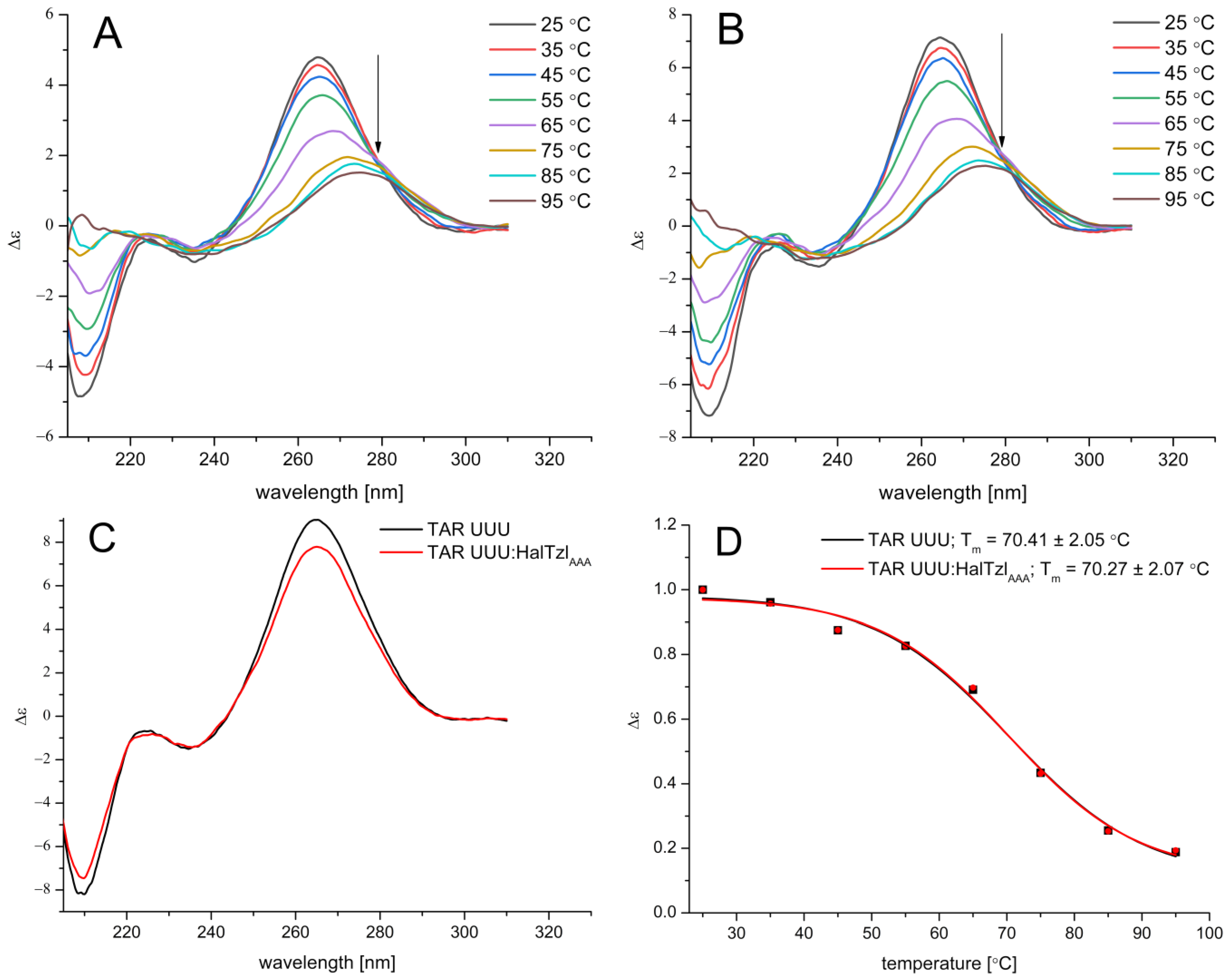 2.3. CD Studies of RNAs–HalTzlAAA Interaction