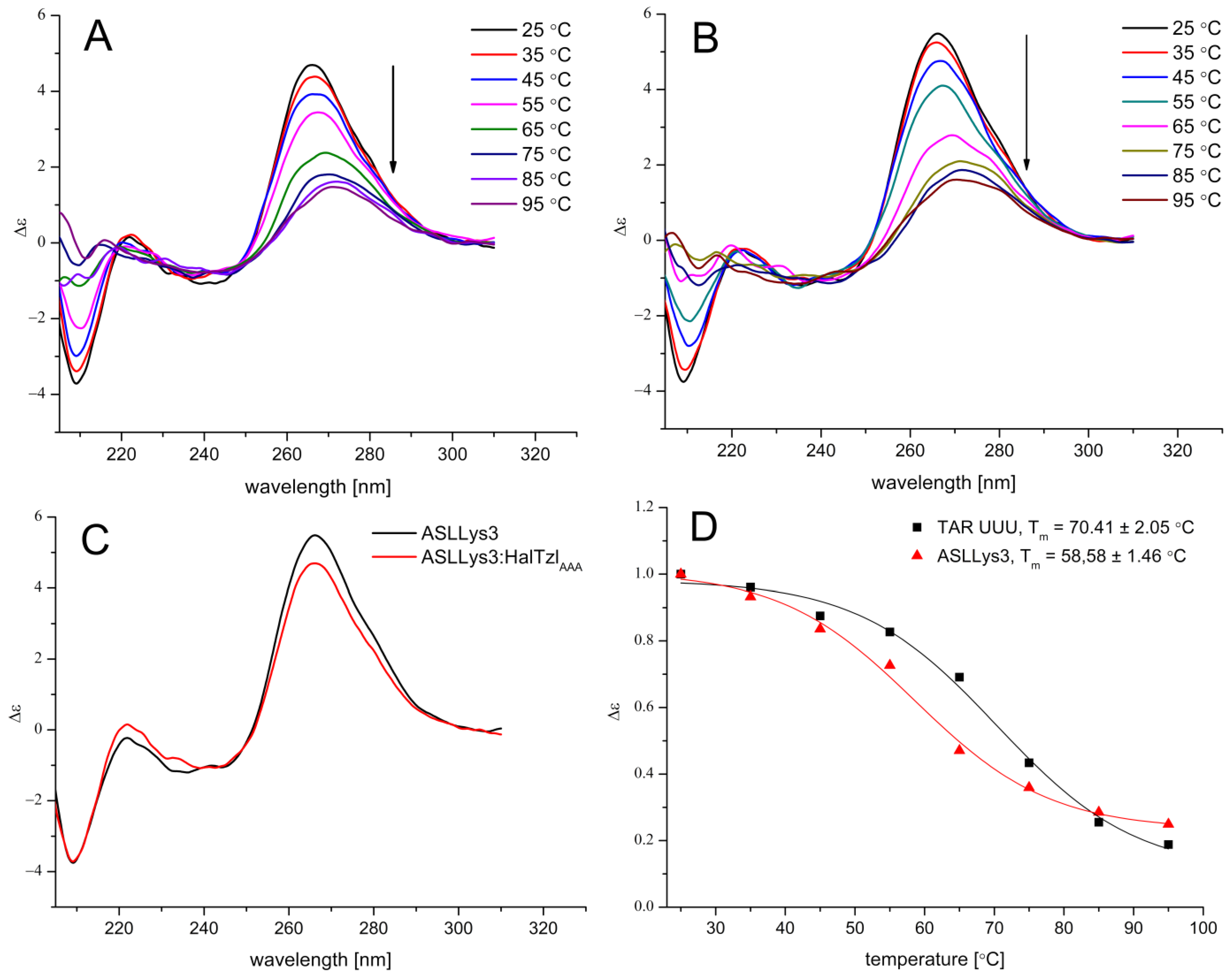 | Free/Complexed TAR/ASL | Tm [°C] | ΔTm [°C] |