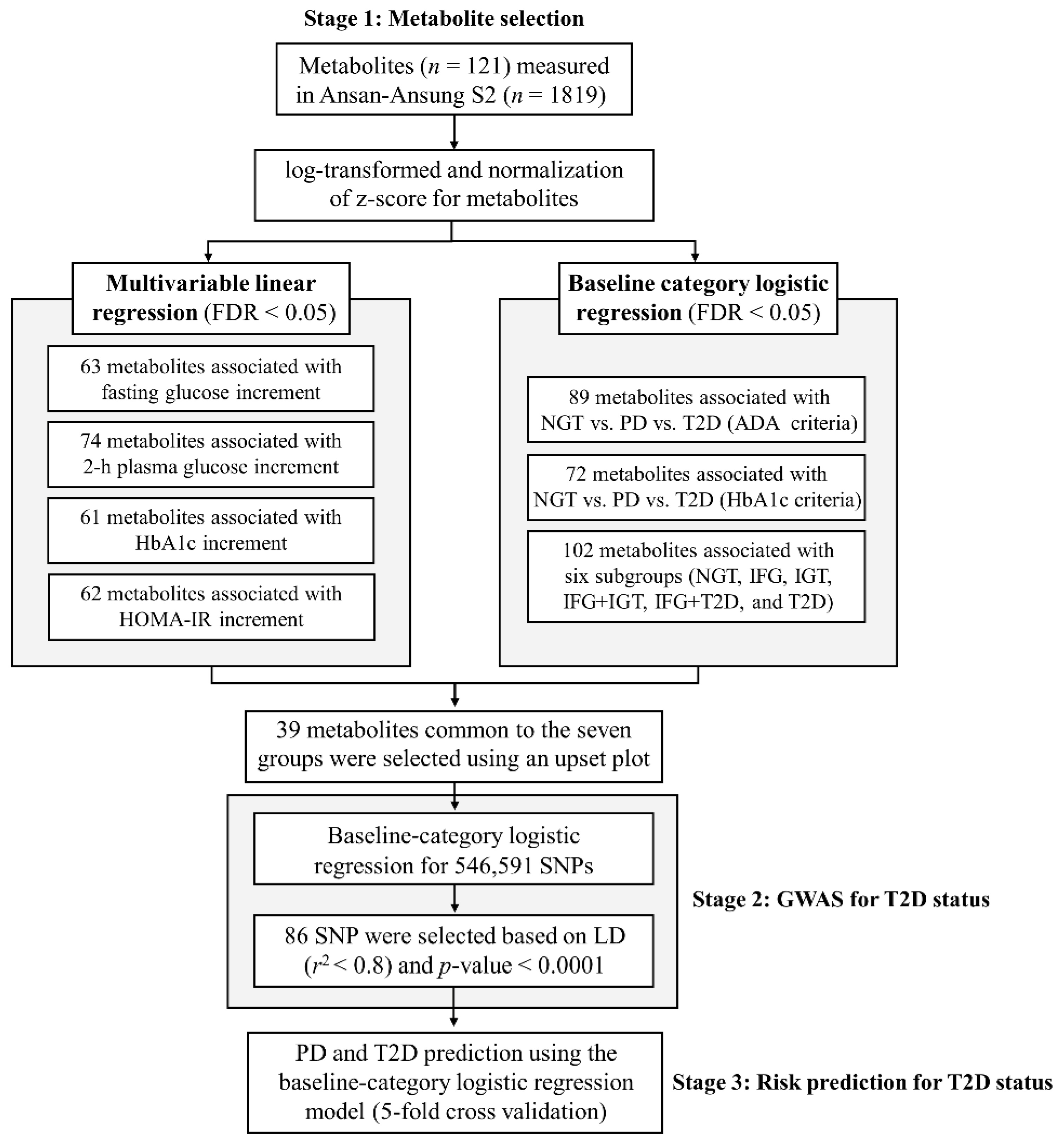 APA StyleCha, J., & Choi, S. (2025). Integrated Genomic–Metabolomic Analysis for Tri-Categorical Classification of Type 2 Diabetes Status in the Korean Ansan–Ansung Cohort. International Journal of Molecular Sciences, 26(23), 11688. https://doi.org/10.3390/ijms262311688