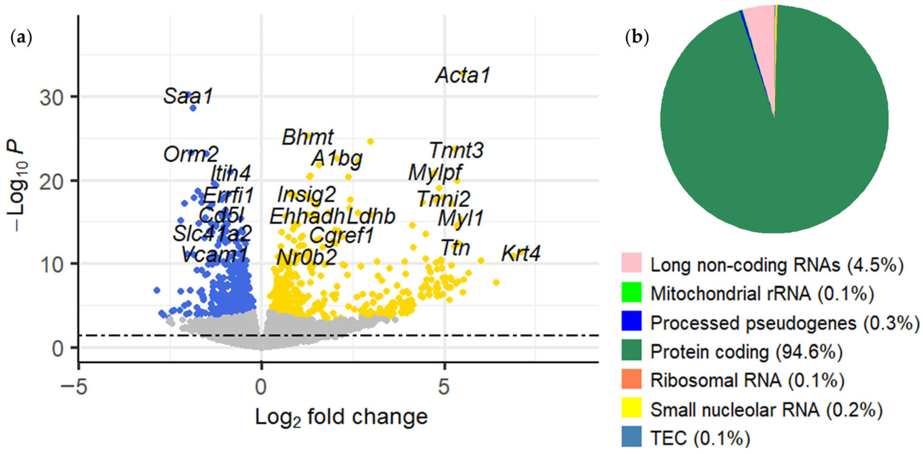 - Dobin, A.; Davis, C.A.; Schlesinger, F.; Drenkow, J.; Zaleski, C.; Jha, S.; Batut, P.; Chaisson, M.; Gingeras, T.R. STAR: Ultrafast Universal RNA-Seq Aligner. Bioinformatics 2013, 29, 15–21. [Google Scholar] [CrossRef]