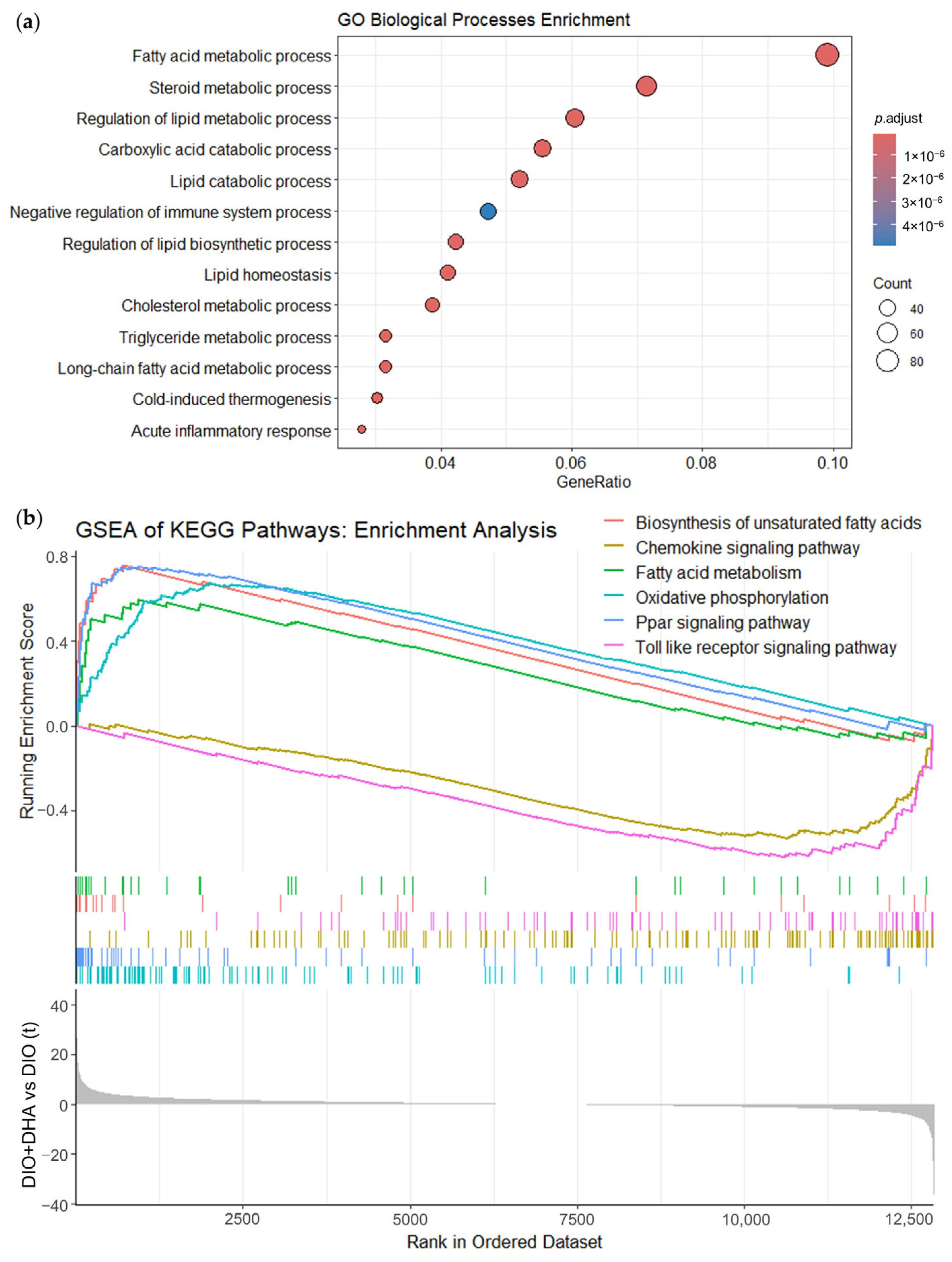 Chicago/Turabian StylePejenaute Martínez de Lizarrondo, Álvaro, Paula Martín-Climent, María Martínez-Rubio, Jesús Saborido-Gavilán, Neira Sáinz, Elisa Félix-Soriano, Miriam Samblas, Mónica Alfonso-Núñez, Elizabeth Guruceaga, M. Pilar Lostao, and et al. 2025. "Transcriptomic Changes Underlying the Anti-Steatotic Effects of DHA Supplementation in Aged Obese Female Mice" International Journal of Molecular Sciences 26, no. 23: 11689. https://doi.org/10.3390/ijms262311689