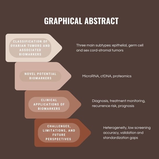 266. Bindu, D.G.; Kumar, K.V.N.; Reddy, K.L.; Charani, M.S.; Gowthami, Y. Biomarkers for Early Detection of Ovarian Cancer: A Review. Asian Pac. J. Cancer Biol. 2024, 9, 81–85. [Google Scholar] [CrossRef]