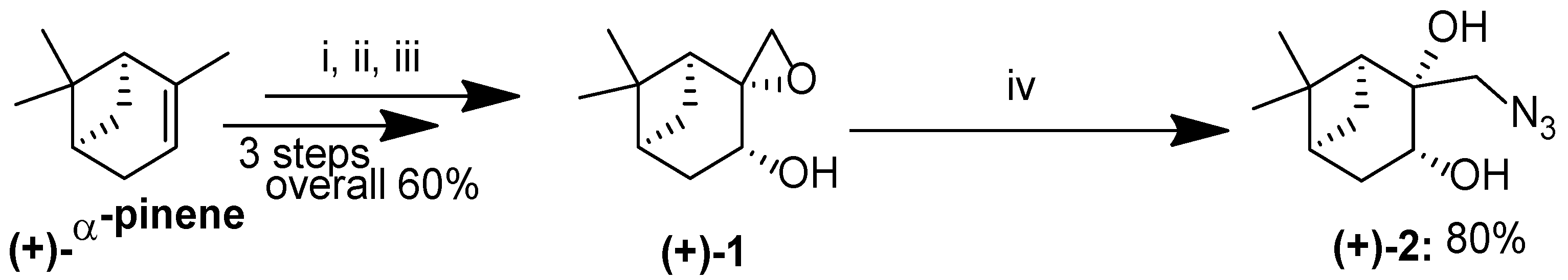 - Szakonyi, Z.; Hetényi, A.; Fülöp, F. Synthesis and application of monoterpene-based chiral aminodiols. Tetrahedron 2008, 64, 1034–1039. [Google Scholar] [CrossRef]