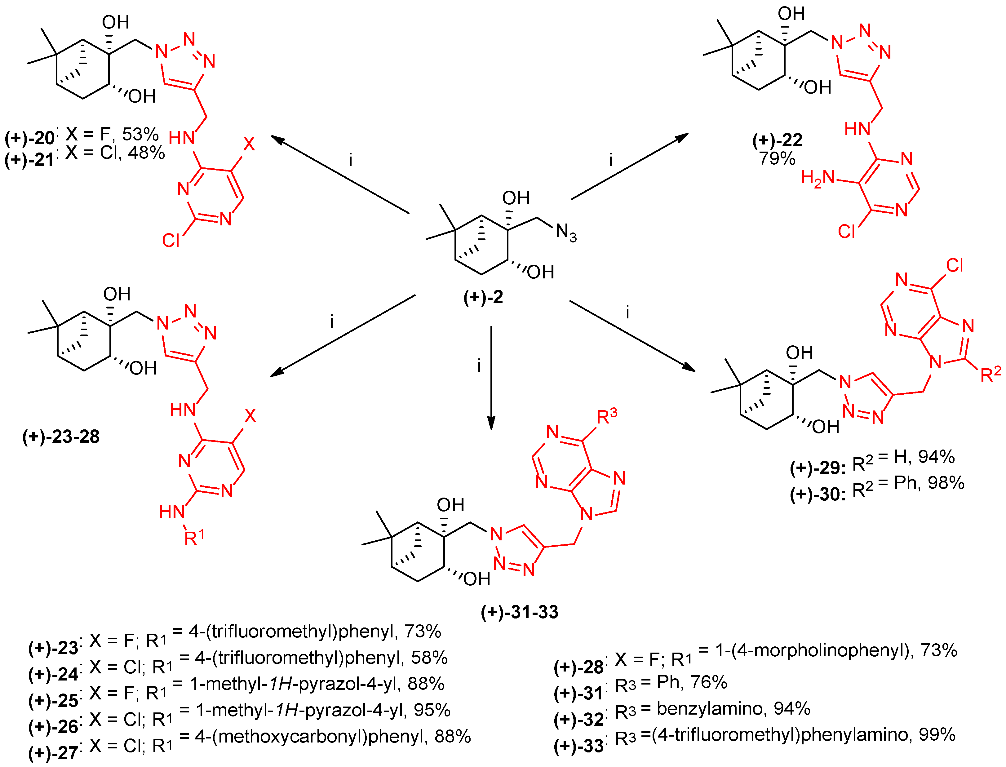 2.3. Coupling of the Pinane Moiety with Alkyne-Functionalized Heterocycles via Click Reaction