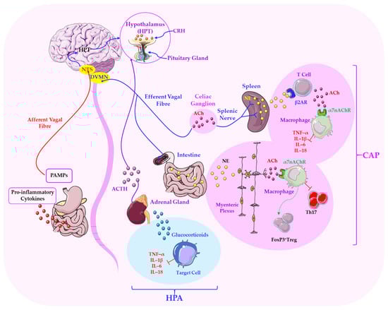 - Tracey, K.J. The Inflammatory Reflex. Nature 2002, 420, 853–859. [Google Scholar] [CrossRef]