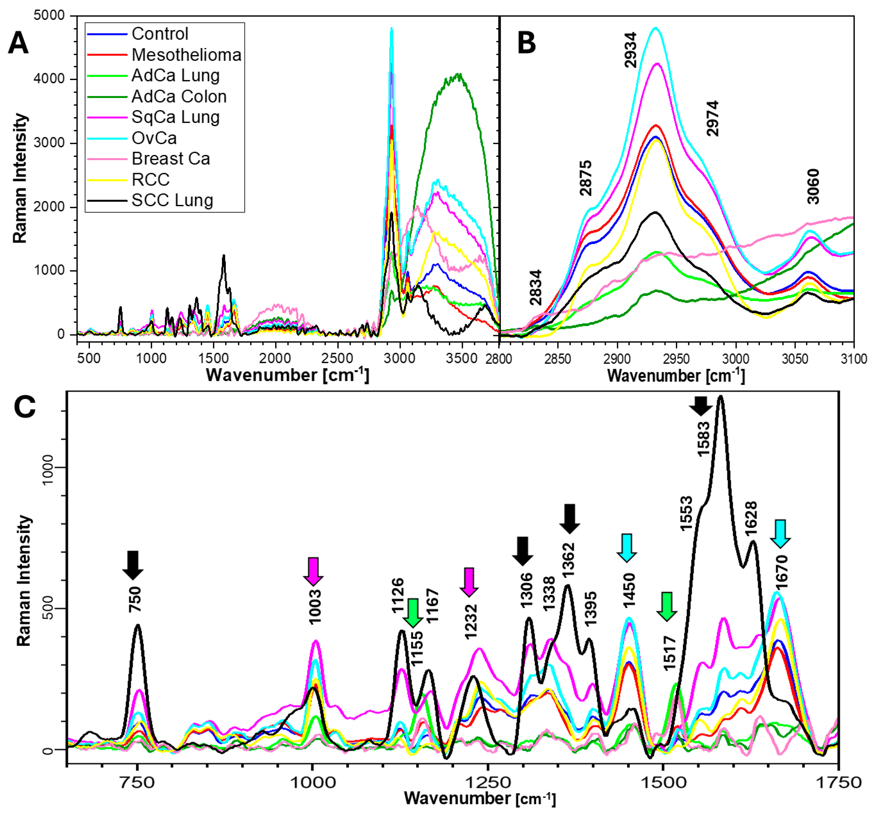 Distinct Spectral Profiles of Pleural Effusions from Malignant Tumors Using Raman Spectroscopy
