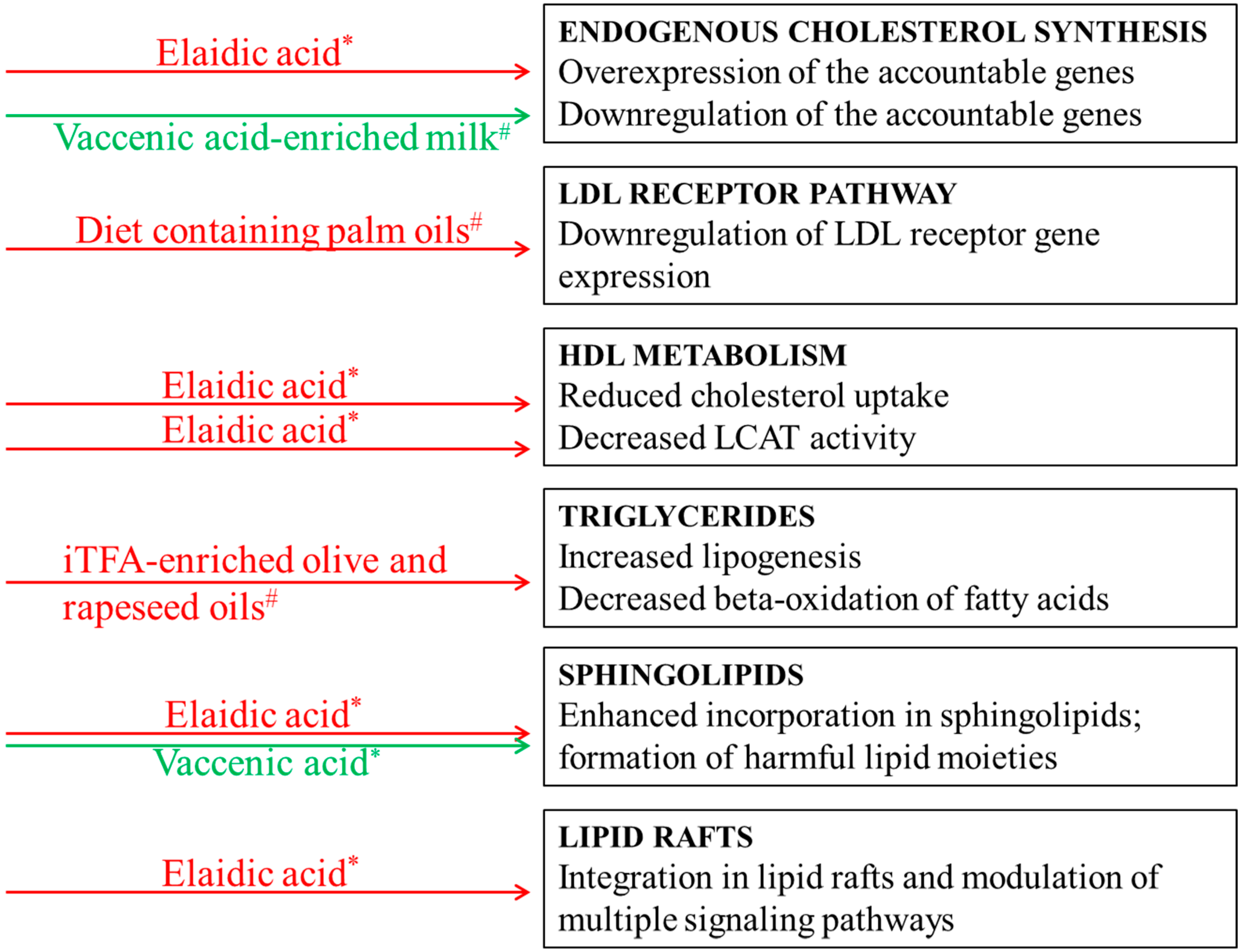 - Reichard, J.F.; Haber, L.T. Mode-of-action evaluation for the effect of trans fatty acids on low-density lipoprotein cholesterol. Food Chem. Toxicol. 2016, 98, 282–294. [Google Scholar] [CrossRef]
