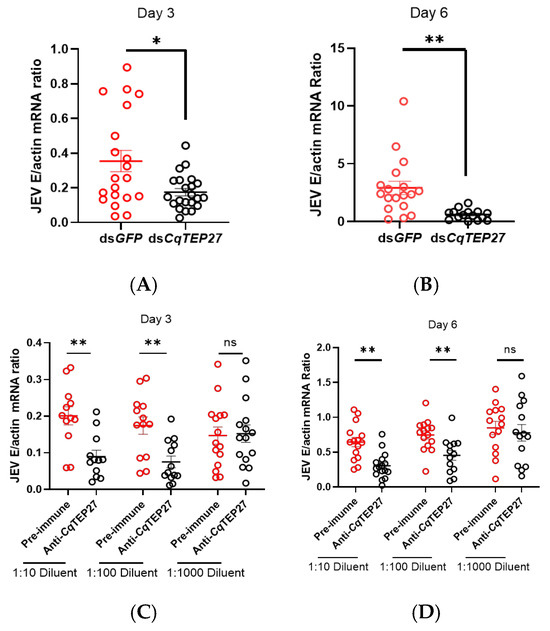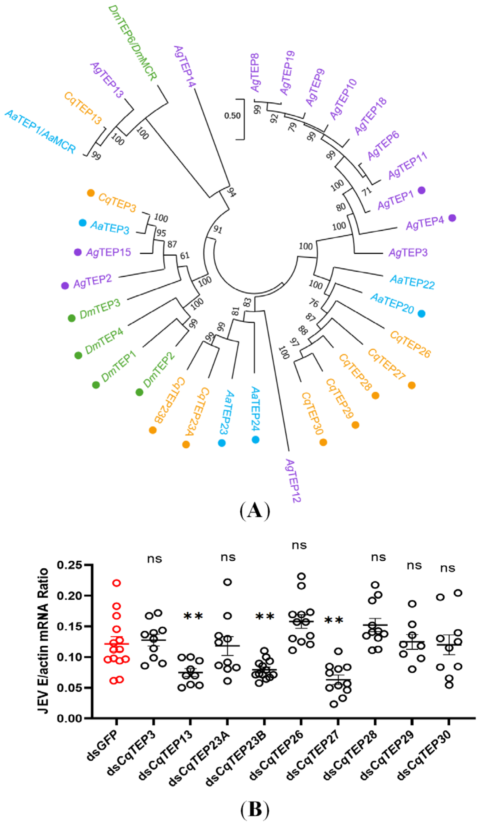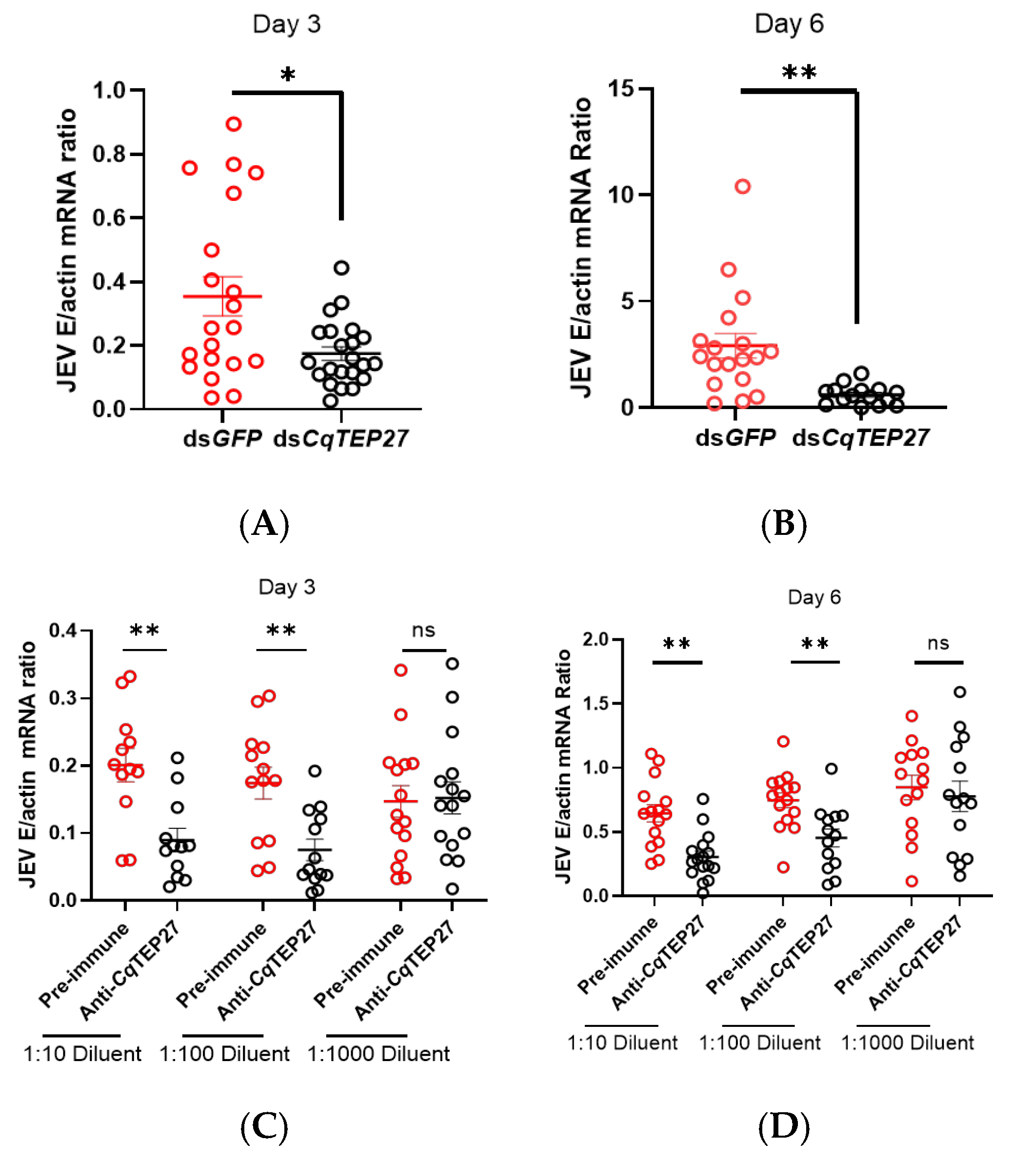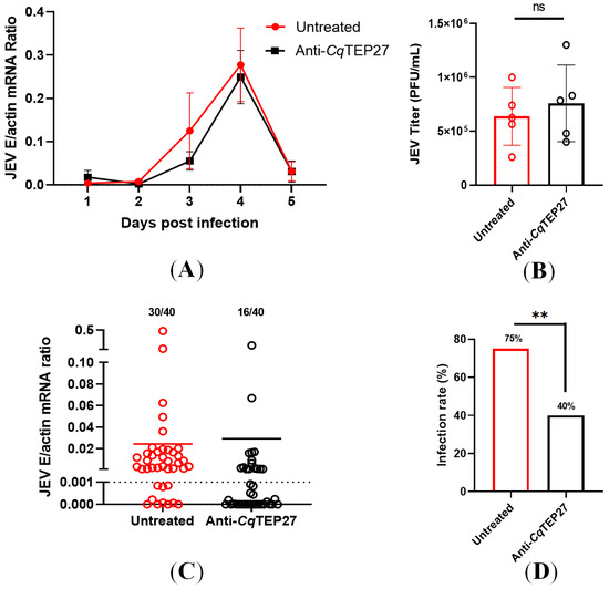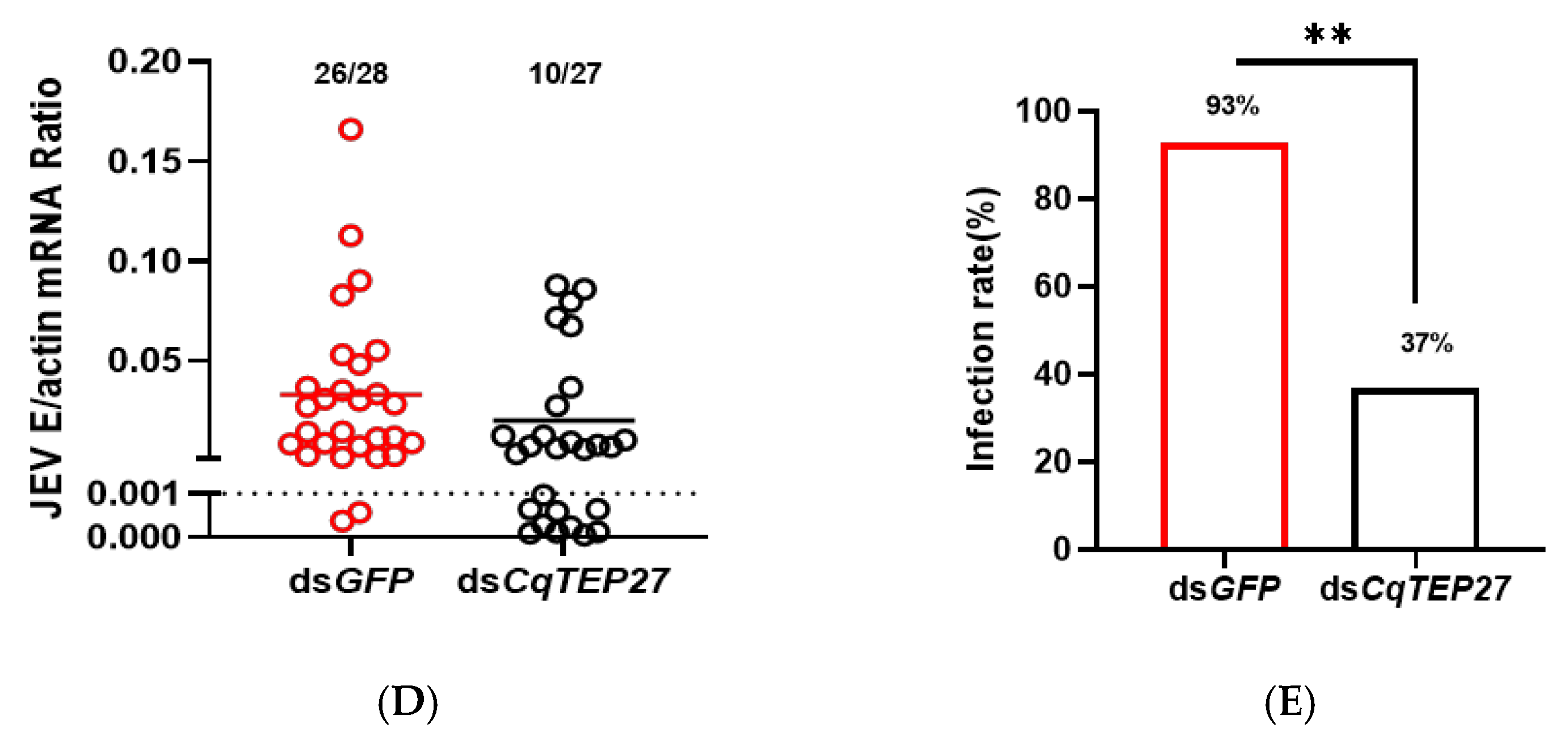 2.2. CqTEP27 Facilitates JEV Infection of C. quinquefasciatus