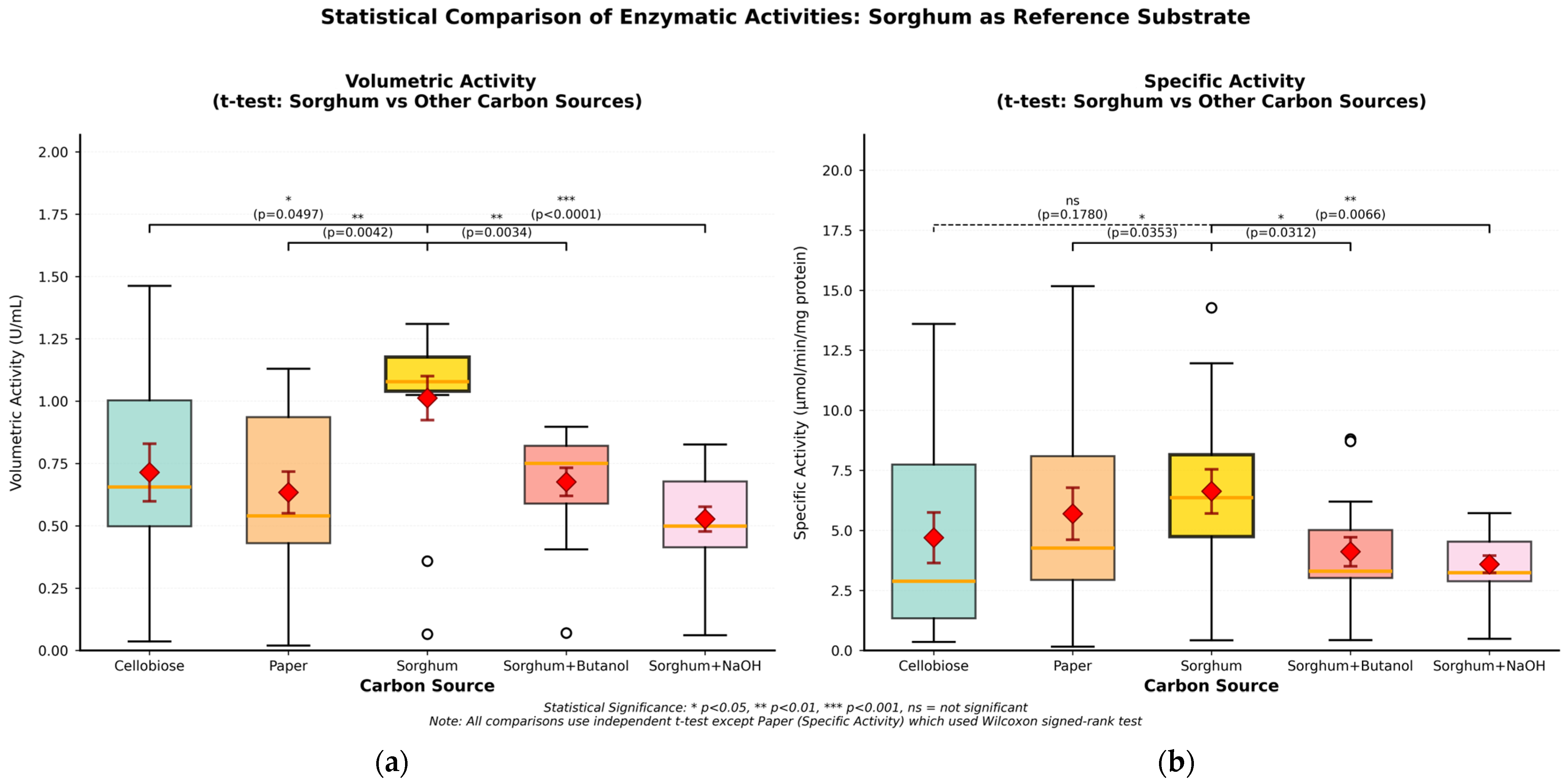 2.1. Evaluation of Chemical Pretreatment of Sorghum Bagasse Based on CMCase Activity