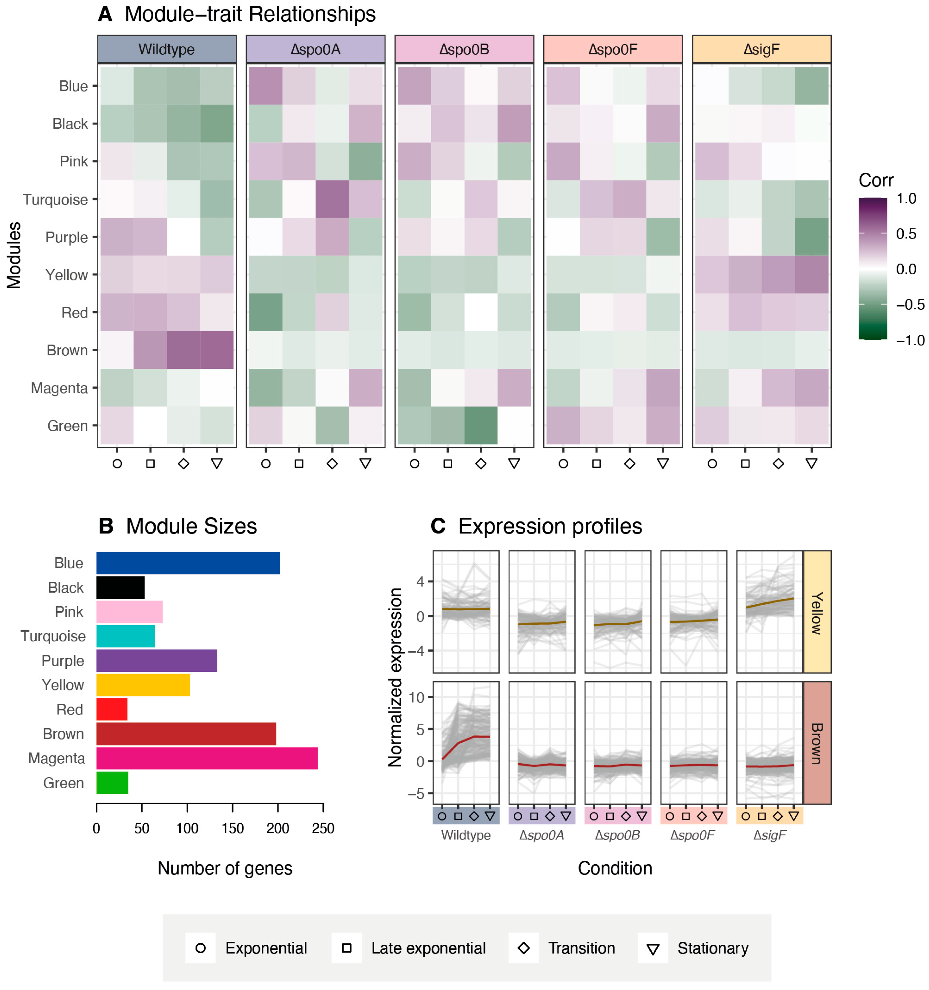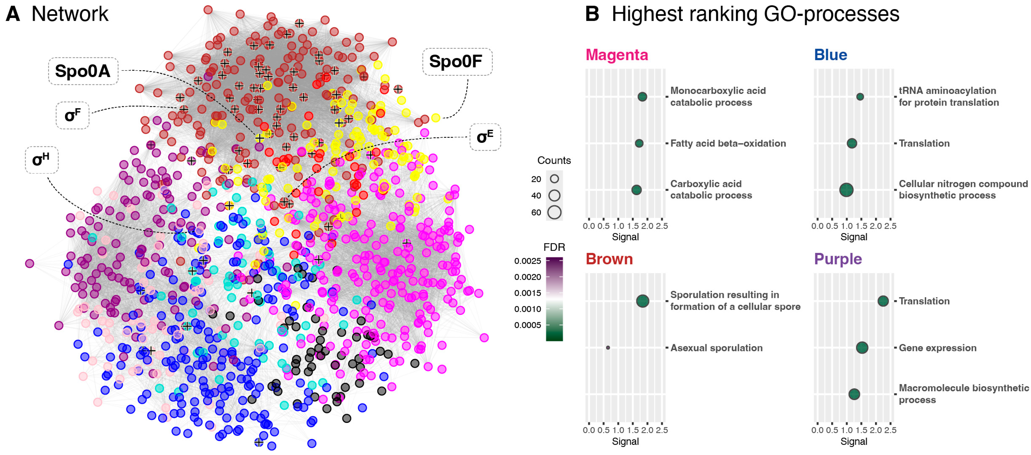 P. thermoglucosidasius as the reference organism. Data regarding Gene Ontologies (GOs) for biological processes were subsequently extracted for each module.