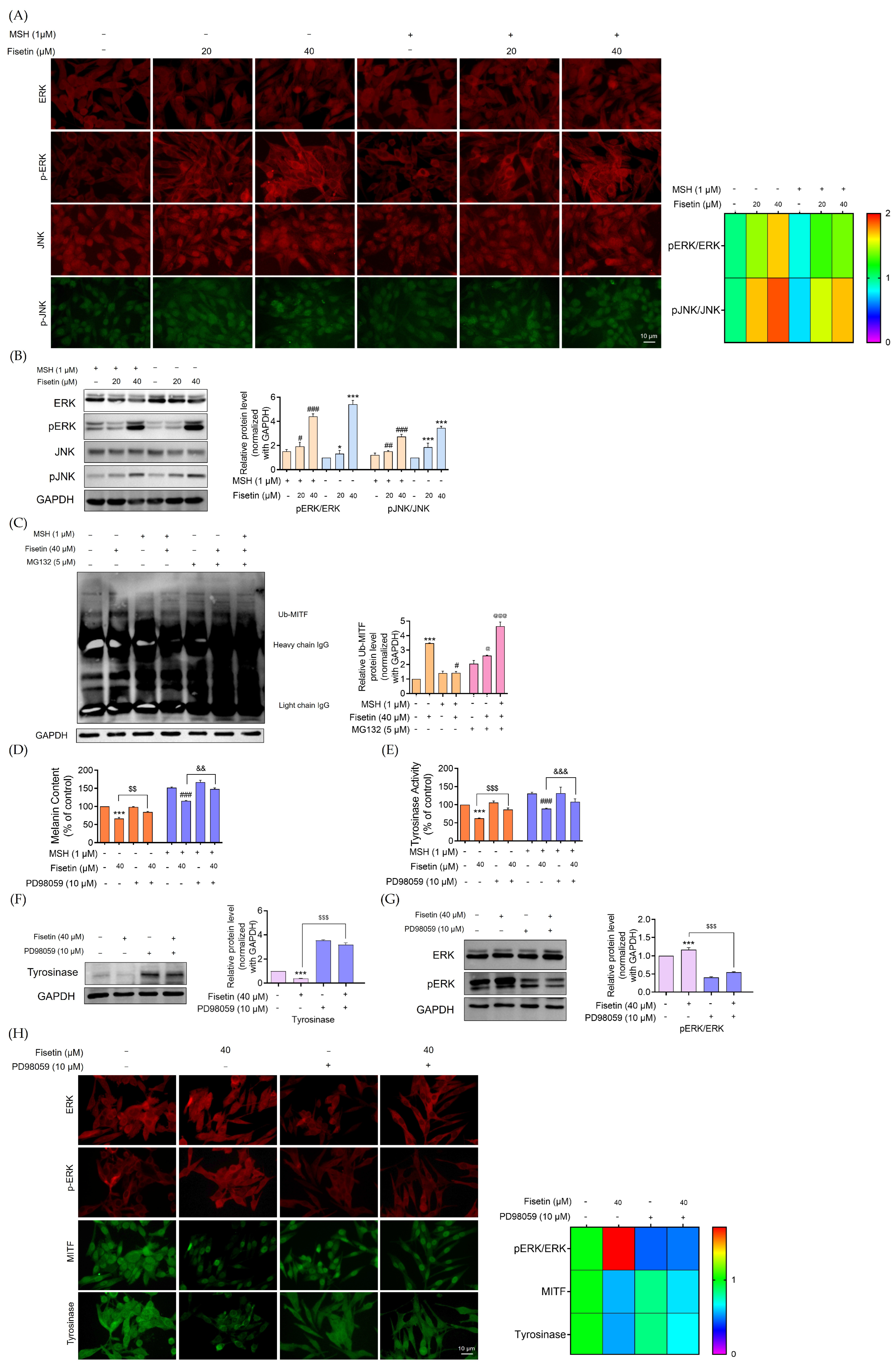 2.4. Fisetin Suppressed Melanogenesis Through the ERK Signaling Pathway, Leading to a Reduction in MITF Degradation