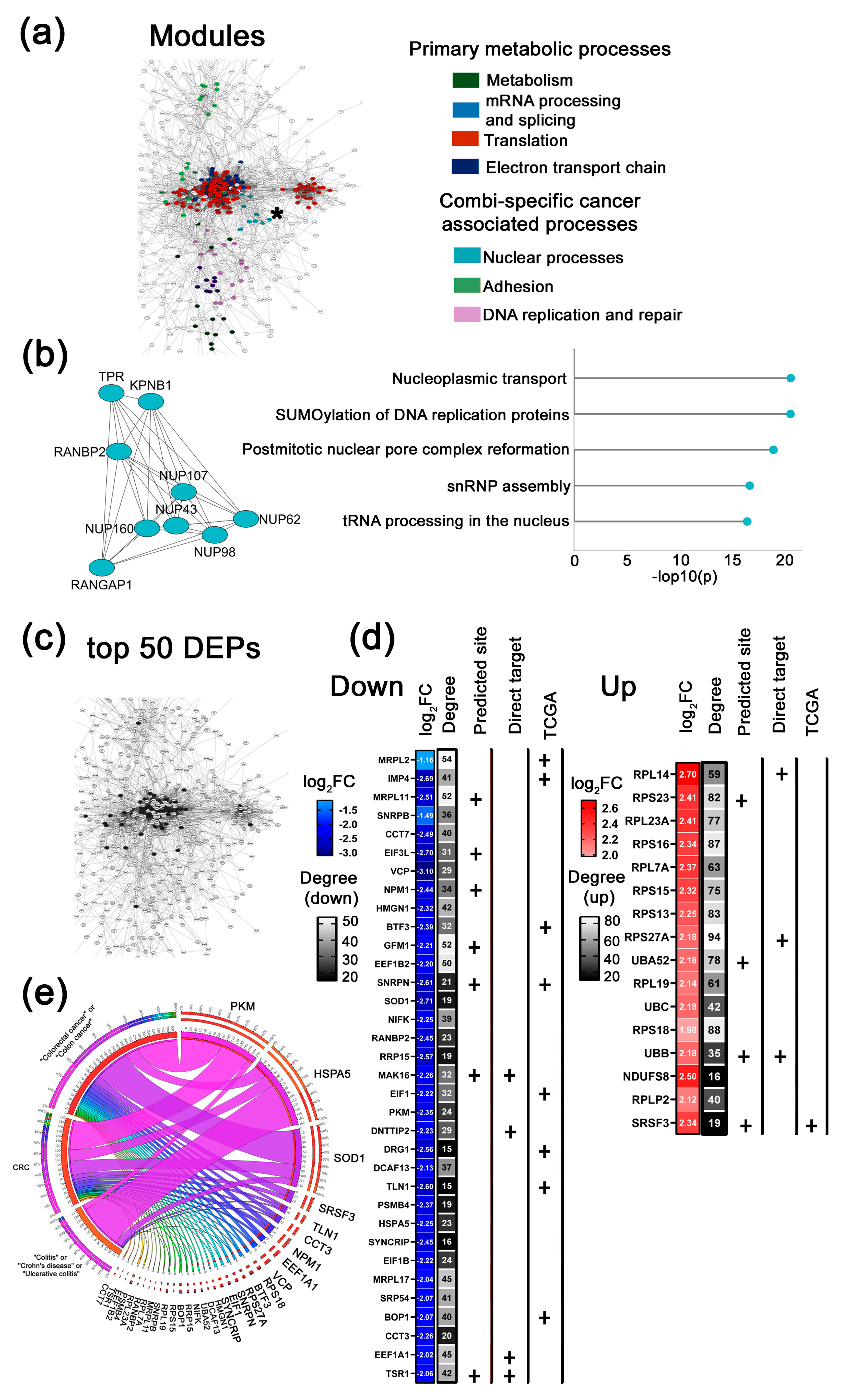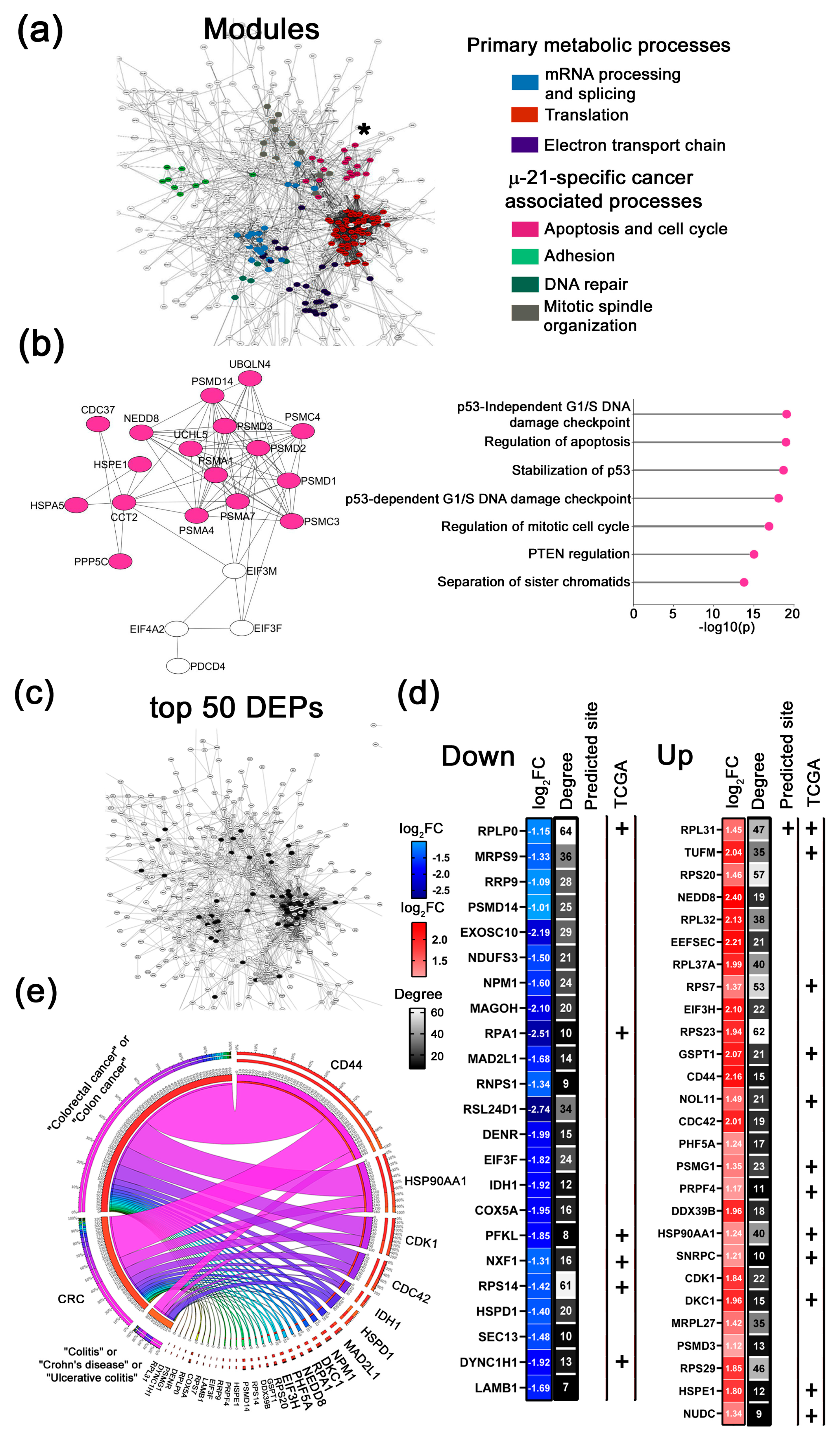 | CD44; HSP90AA1; CDK1; IDH1; HSPD1; MAD2L1 | eIF3F; NPM1; LAMB1; RPL31; RPA1; DKC1; NEDD8; DYNC1H1; RPLP0; RRP9; PSMD14; RPS20; EIF3H; GSPT1; PHF5A; PSMG1; PRPF4; DDX39B; DENR; COX5A; RPS14; HSPE1 | PFKL; NDUFS3; DENR; TUBB4B; EXOSC10; RPL37a; RPS7; RPS23; NUDC; SEC13; MRPS9; RPL32; EEFSEC; MAGOH; NOL11; RNPS1; RSL24D1; SNRPC; NXF1; MRPL27; PSMD3; RPS29; TUFM |