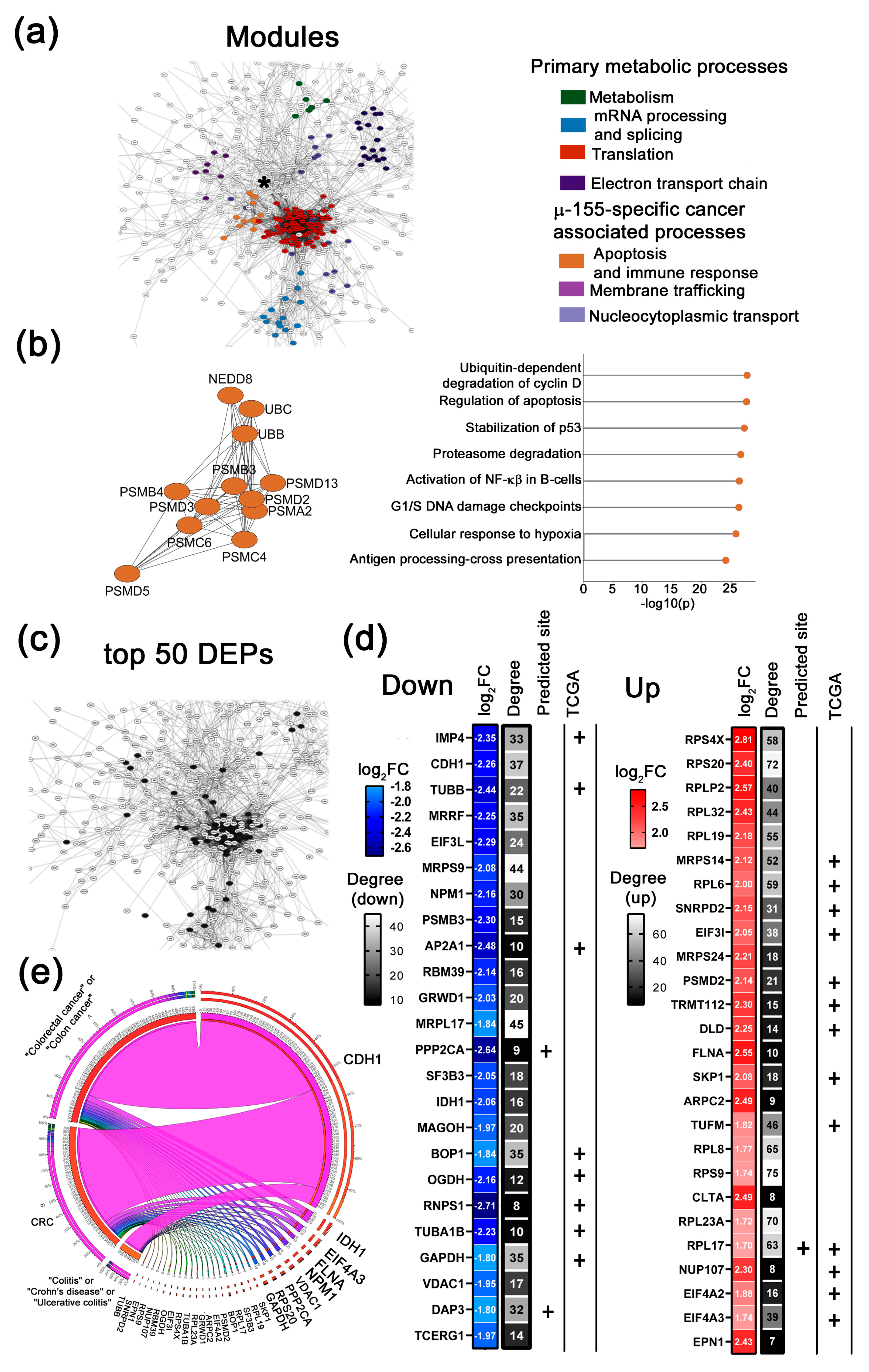 | CDH1; VDAC1; NPM1; FLNA; EIF4A3; IDH1 | TUBB; SNRPD2; EPN1; RPS9; NUP107; RBM39; OGDH; EIF3I; RPS4X; TUBA1B; RPL23A; GRWD1; ARPC2; EIF4A2; PSMD2; BOP1; RPL17; SKP1; SF3B3; RPL19; GAPDH; RPS20; PPP2CA | RPLP2; RPL32; IMP4; MRPS14; MRRF; EIF3L; MRPS9; RPL6; MRPS24; PSMB3; TRMT112; DLD; AP2A1; MRPL17; TUFM; RPL8; MAGOH; RNPS1;CLTA; DAP3; TCERG1 |