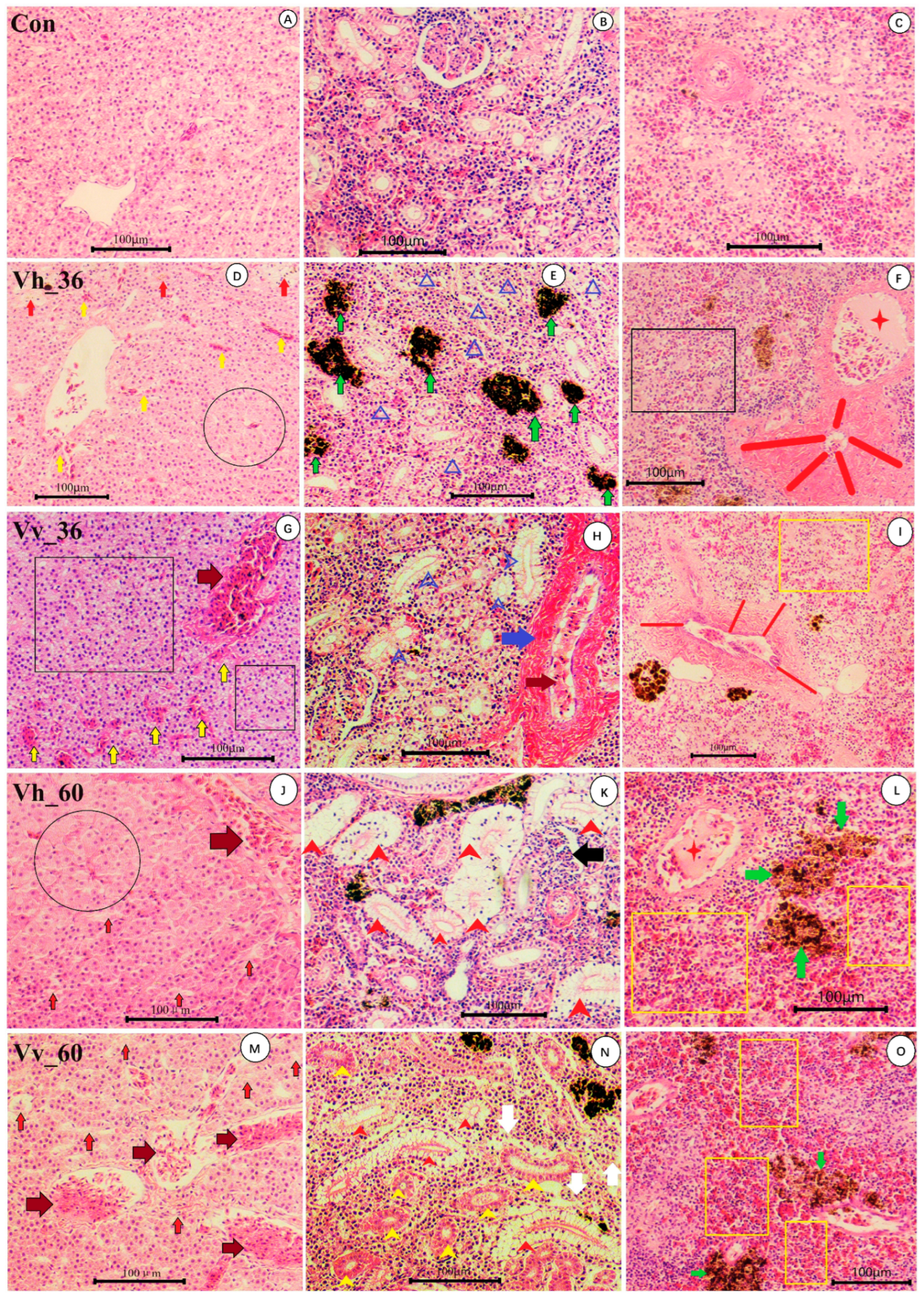 2.1. Comparative Histopathology of Liver, Kidney, and Spleen
