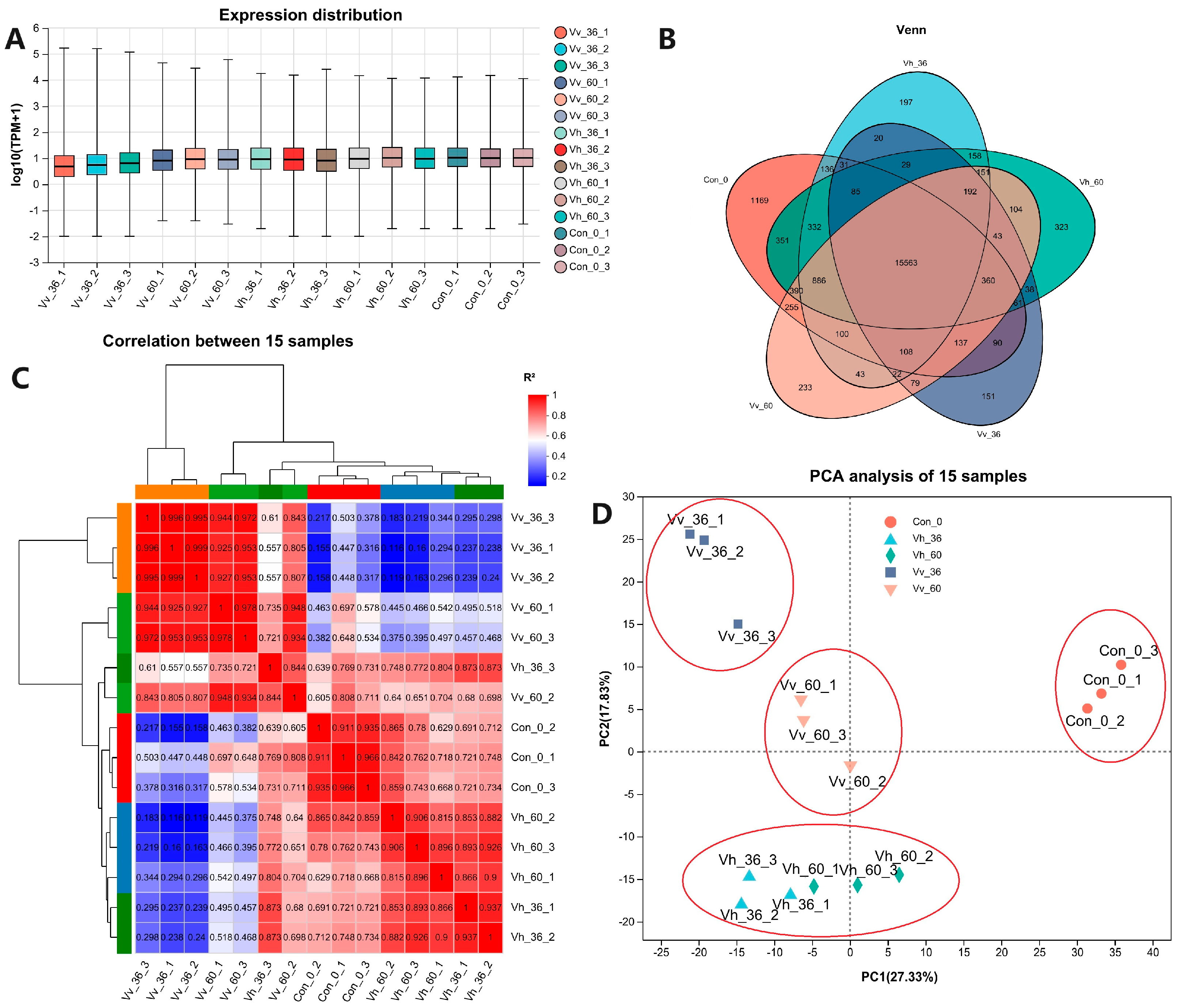 2.3. Gene Expression, Venn Analysis, Correlation and Clustering Between Samples