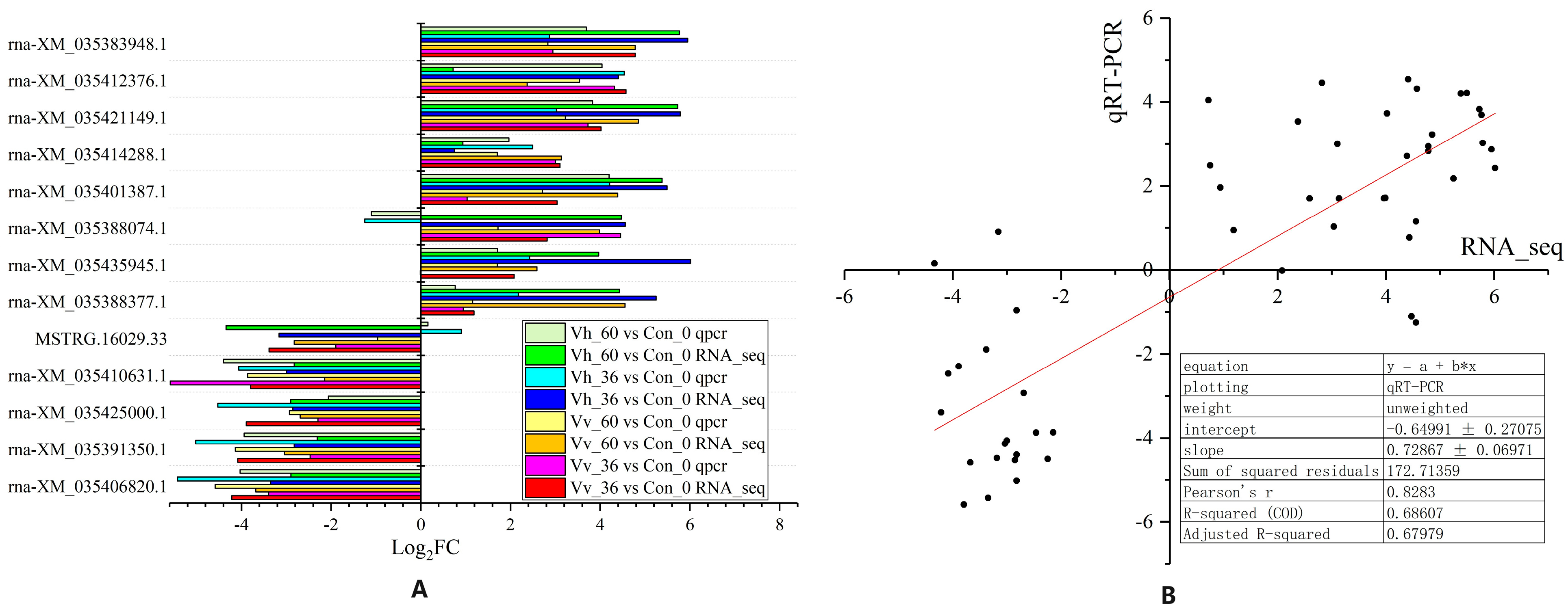 - Trapnell, C.; Williams, B.A.; Pertea, G.; Mortazavi, A.; Kwan, G.; van Baren, M.J.; Salzberg, S.L.; Wold, B.J.; Pachter, L. Transcript assembly and quantification by RNA-Seq reveals unannotated transcripts and isoform switching during cell differentiation. Nat. Biotechnol. 2010, 28, 511–515. [Google Scholar] [CrossRef] [PubMed]