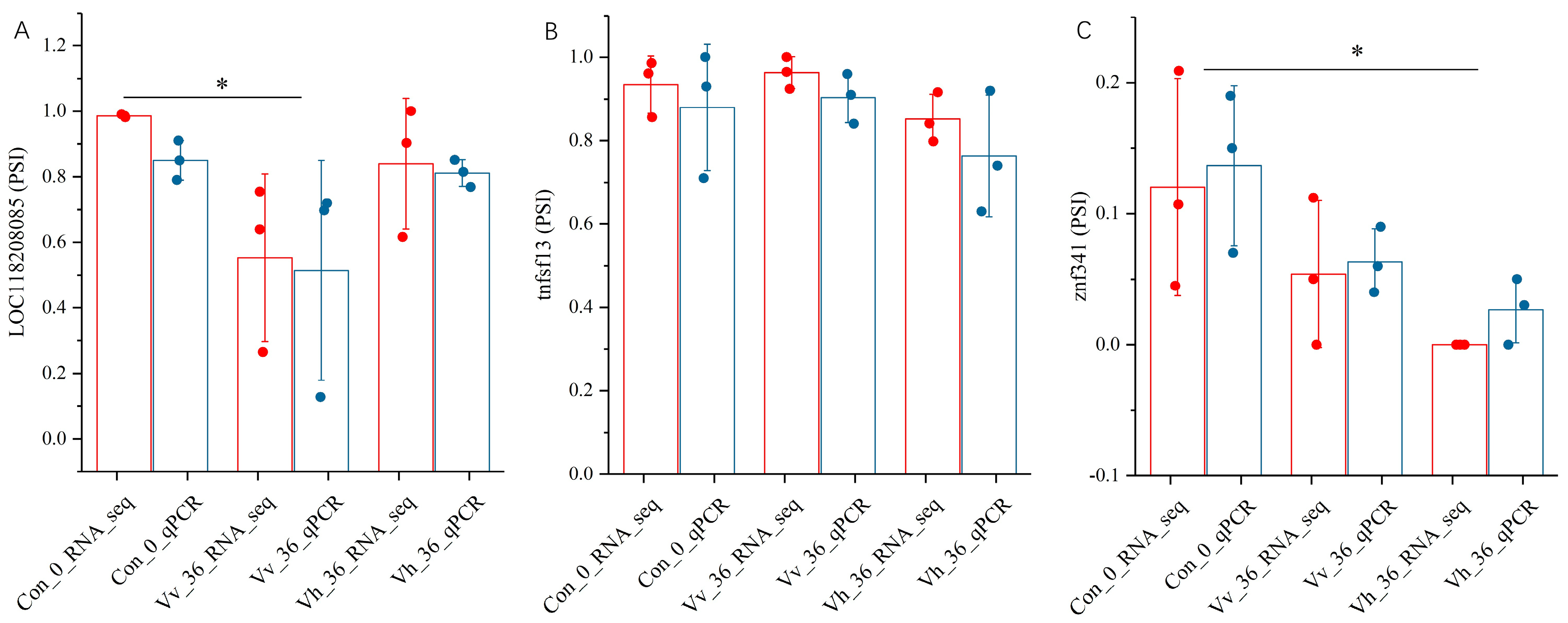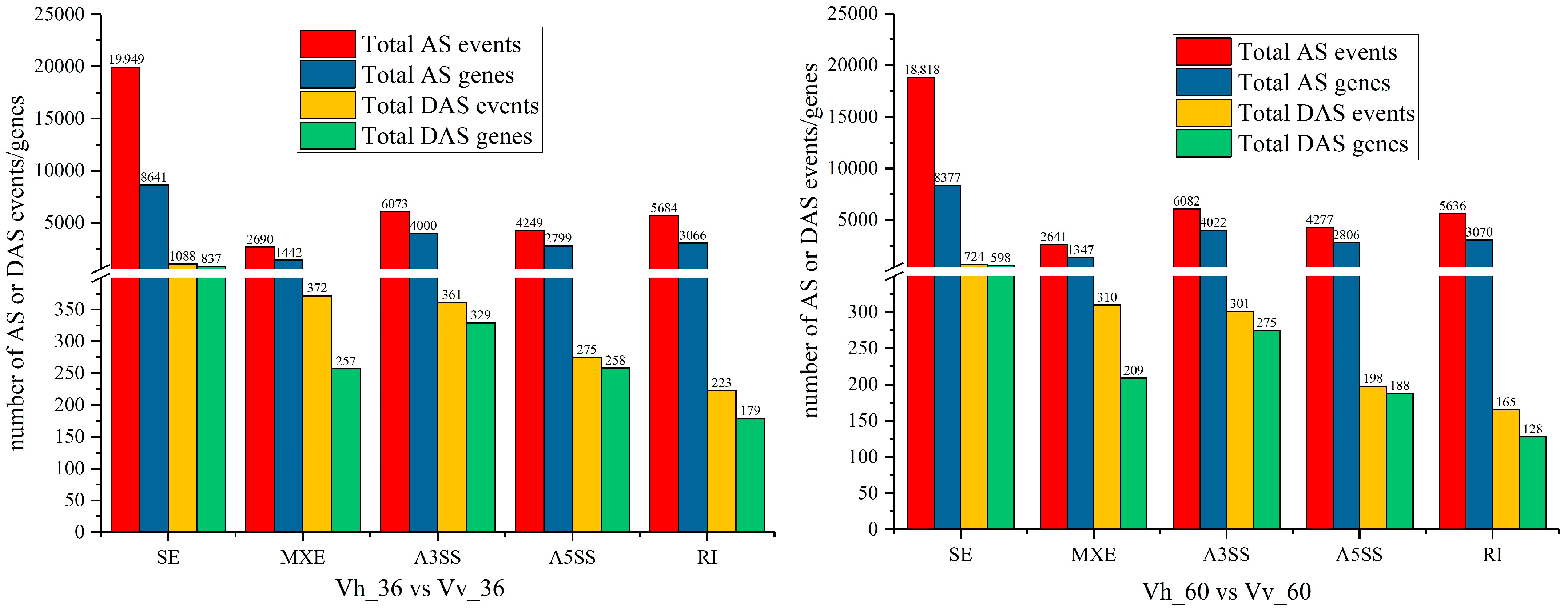 2.7. The Differential Alternative Splicing Genes (DASs) Analysis