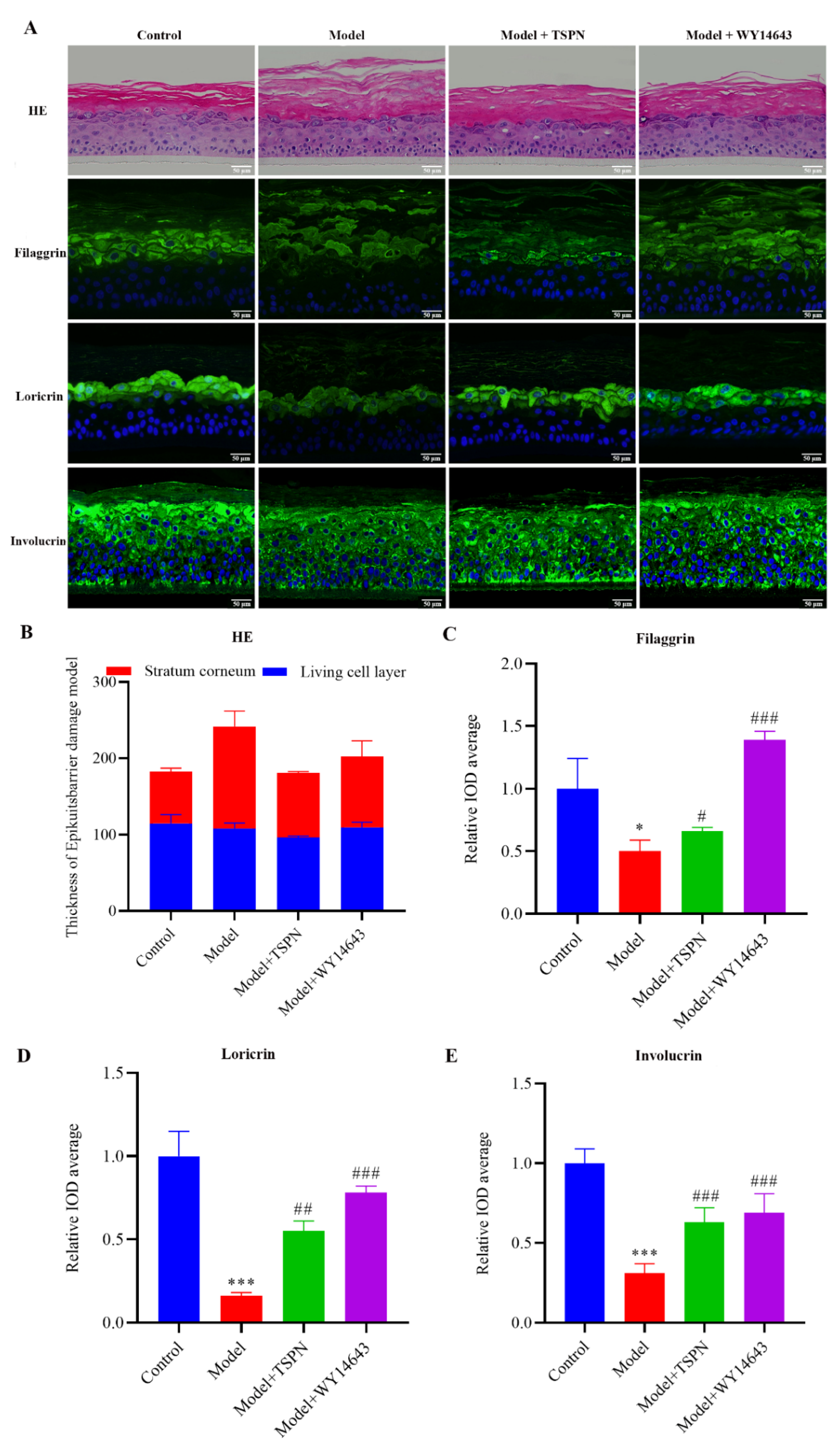 2.2. Repair Efficacy of TSPN on SDS-Induced Epidermal Barrier Injury Model