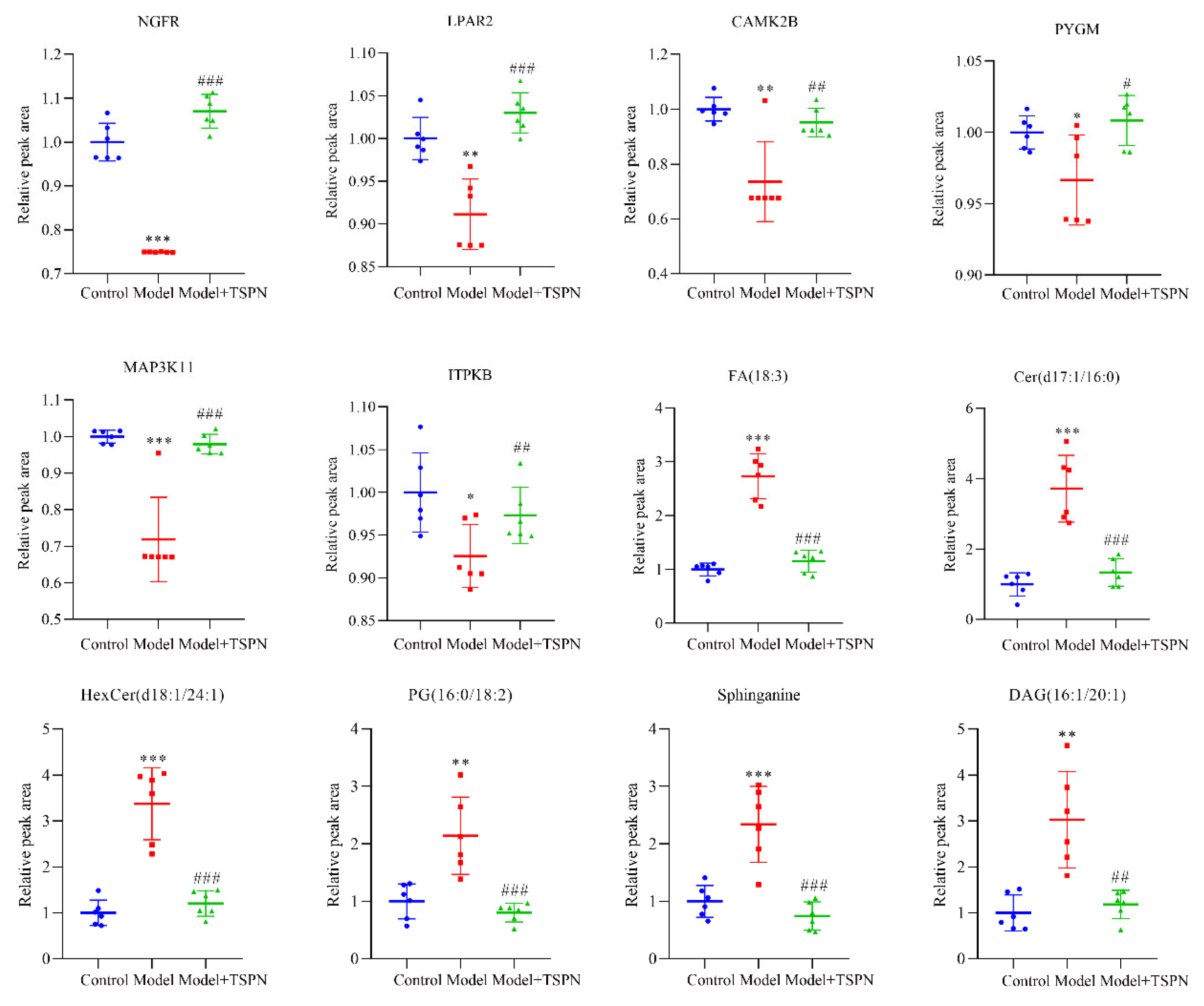 2.5. Metabolomics Identified the Lipid Metabolites and Pathways Related to the Effect of TSPN on SDS-Induced Epidermal Barrier Injury Model