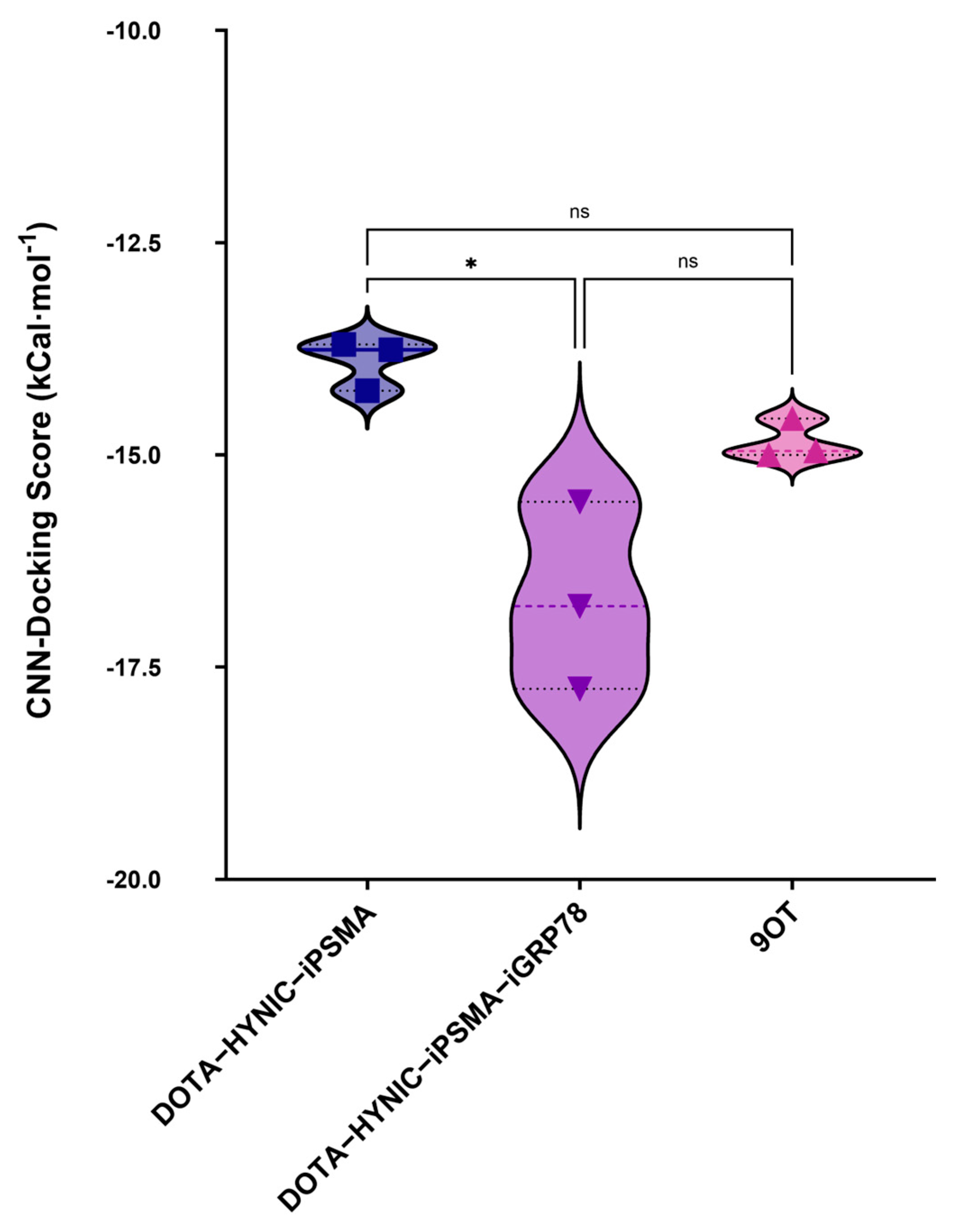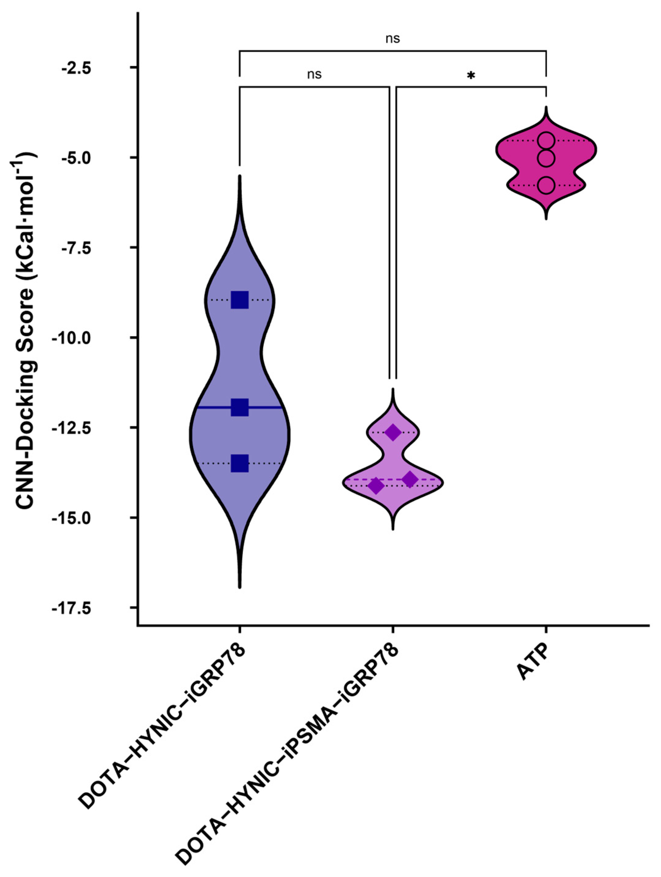 - Zhao, H.; Meng, H.; Wen, J.; Wang, C.; Liu, J.; Huang, G. Noninvasive Classification of Human Triple Negative Breast Cancer by PET Imaging with GRP78-Targeted Molecular Probe [68Ga]DOTA-VAP. Mol. Imaging Biol. 2020, 22, 772–779. [Google Scholar] [CrossRef] [PubMed]