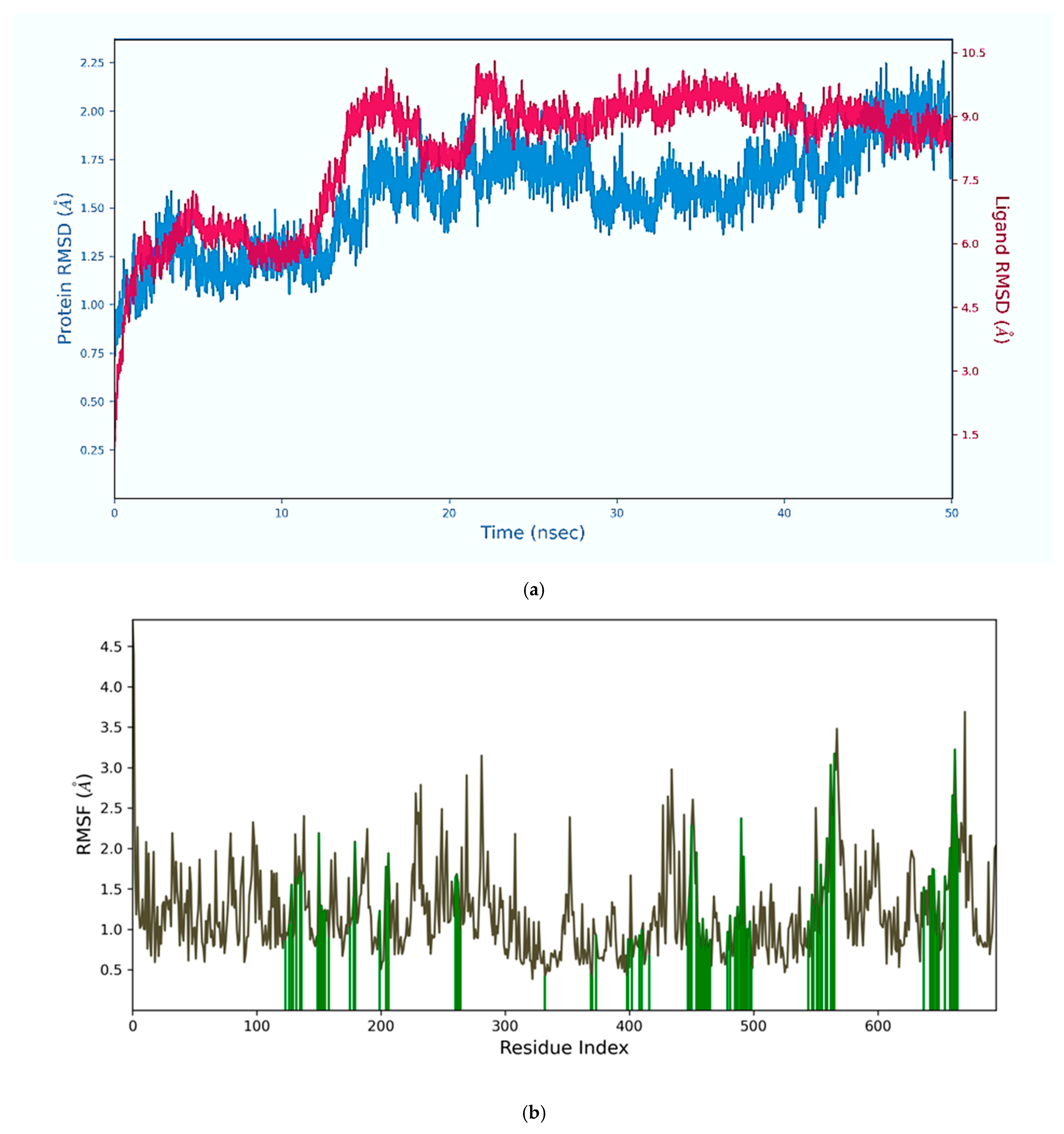 3.1.1. Protein Preparation and Molecular Dynamics