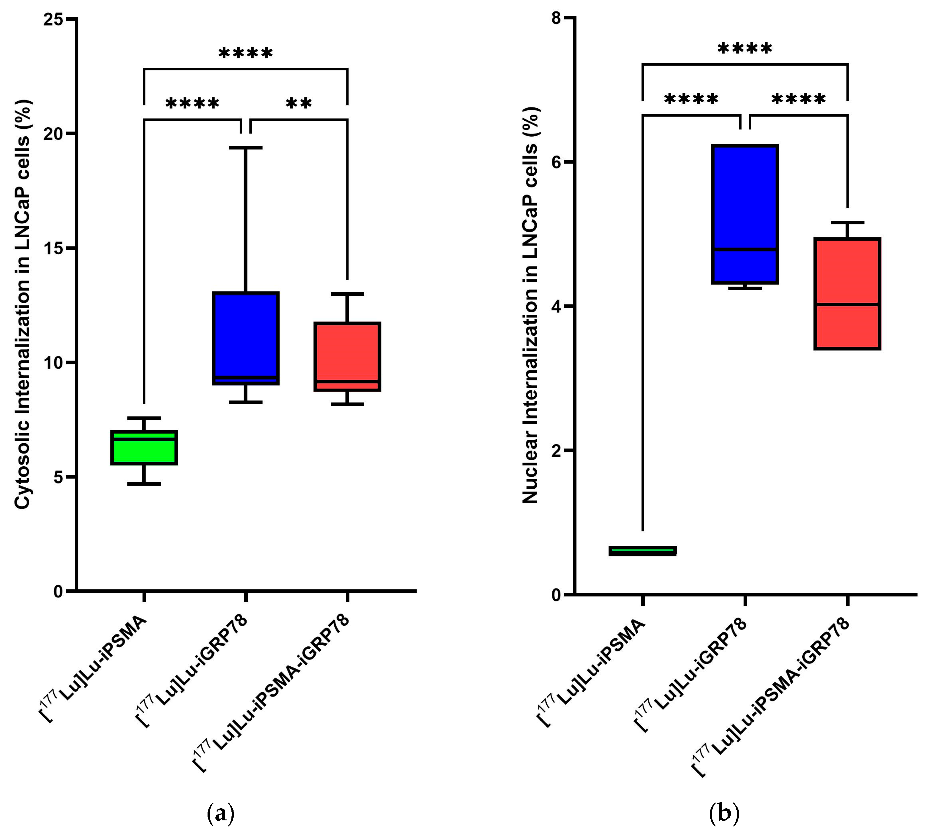 Azorín-Vega, E.; García-Arce, D.; Luna-Gutiérrez, M.; Ocampo-García, B.; Trujillo-Benítez, D.; Vidal-Limon, A.; Rodríguez-Martínez, G.; Durán-Pastén, M.L.; Meléndez-Alafort, L.; Ferro-Flores, G. Enhancing Cytosolic Internalization of [177Lu]Lu–iPSMA in Prostate Cancer Cells: The Effect of Conjugating a GRP78 Inhibitor to the Radiotherapeutic Molecule. Int. J. Mol. Sci. 2025, 26, 11783. https://doi.org/10.3390/ijms262411783
