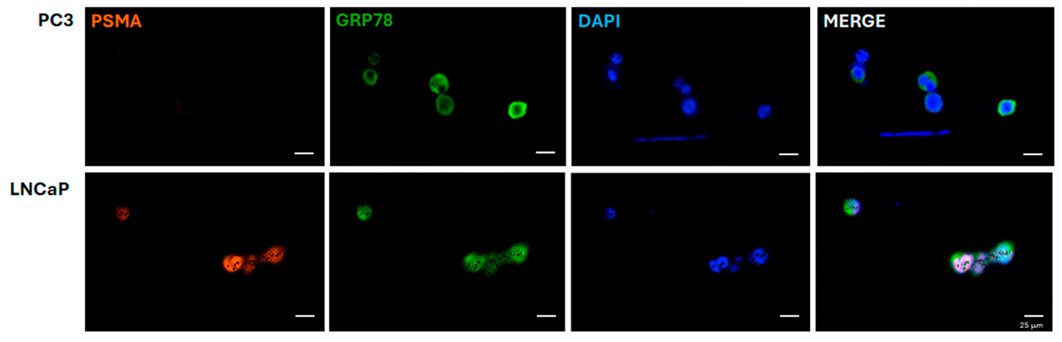 3.3.3. GRP78 and PSMA Cell Immunodetection