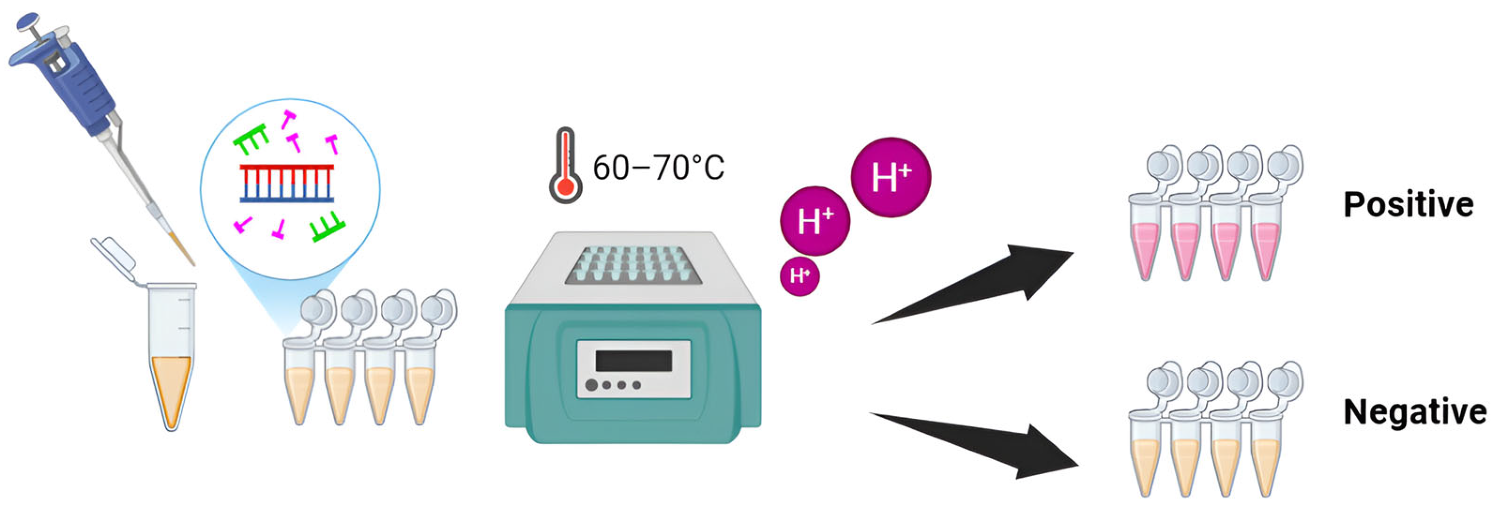 - Charoenpanich, P.; Mungkung, A.; Seeviset, N. A PH Sensitive, Loop-Mediated Isothermal Amplification Assay for Detection of Salmonella in Food. Sci. Eng. Health Stud. 2020, 2020, 160–168. [Google Scholar] [CrossRef]