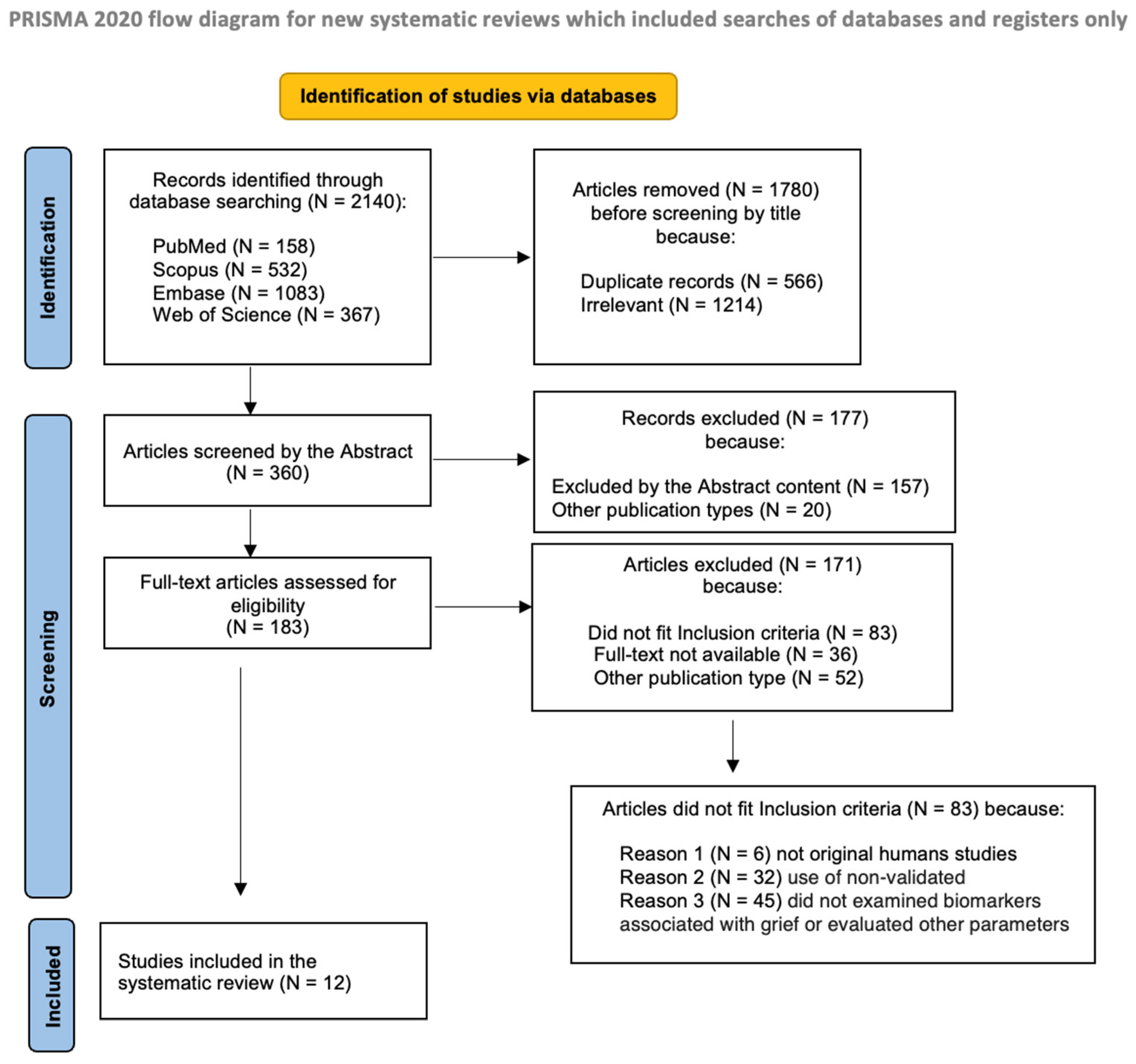 - Studies that investigated biomarkers associated with bereavement in any kind of biological matrices, plasma, serum, saliva, blood cells and urine to ensure selection of a wider data collection.