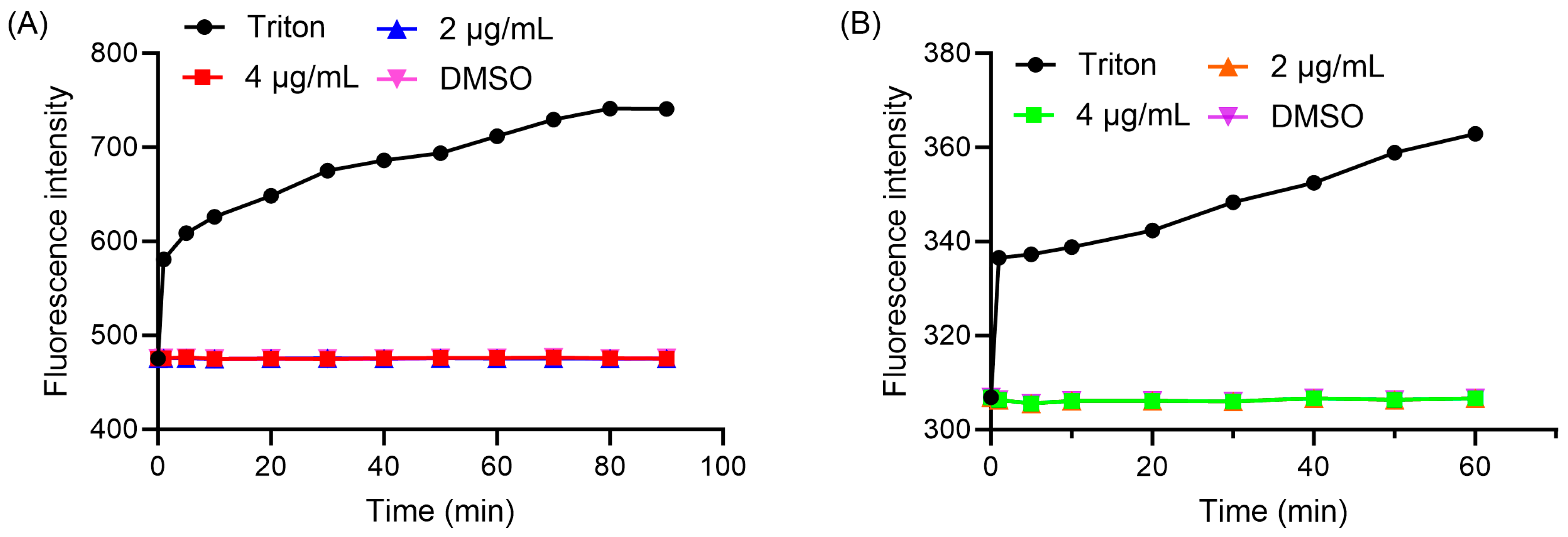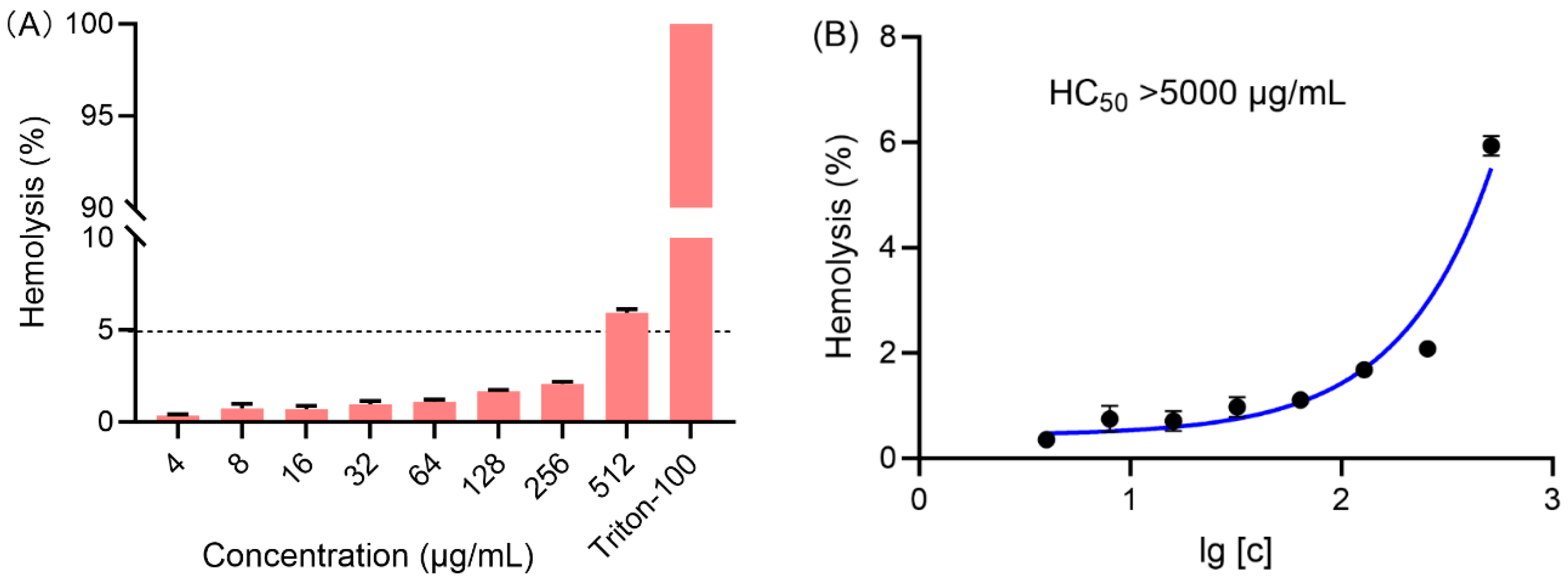 3.2.2. Cytotoxicity and Hemolytic Activity