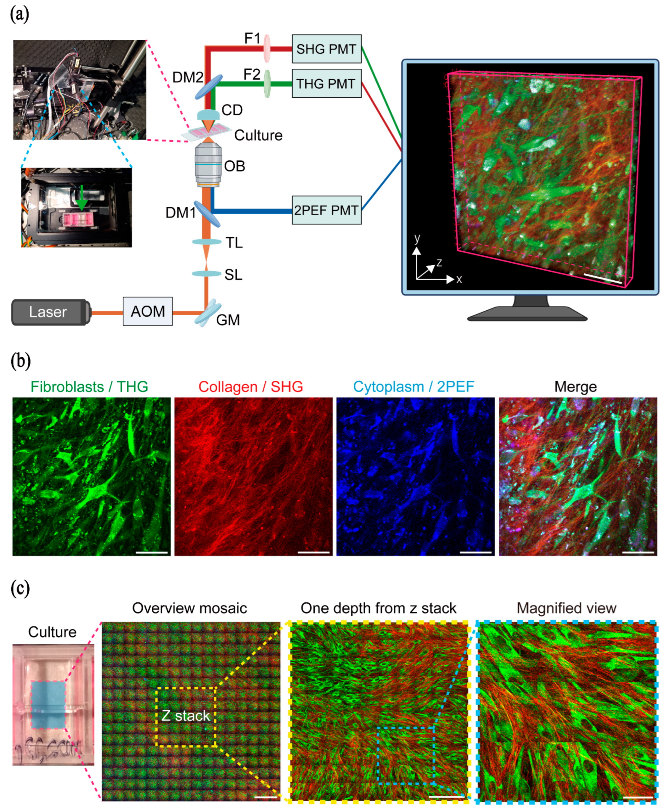 - Borile, G.; Sandrin, D.; Filippi, A.; Anderson, K.I.; Romanato, F. Label-Free Multiphoton Microscopy: Much More than Fancy Images. Int. J. Mol. Sci. 2021, 22, 2657. [Google Scholar] [CrossRef] [PubMed]