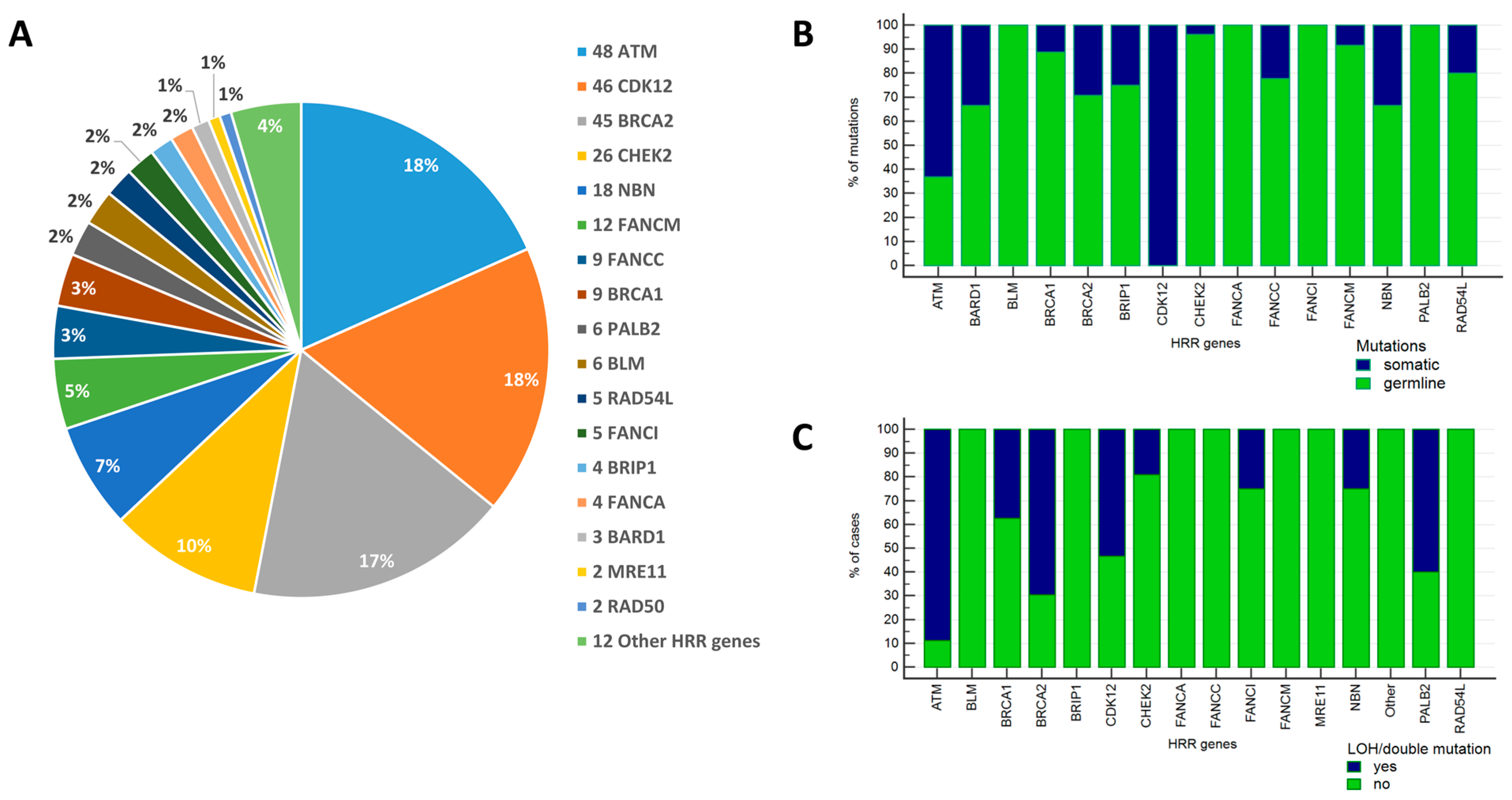 2.1. Frequency and Spectrum of Mutations in HRR Genes
