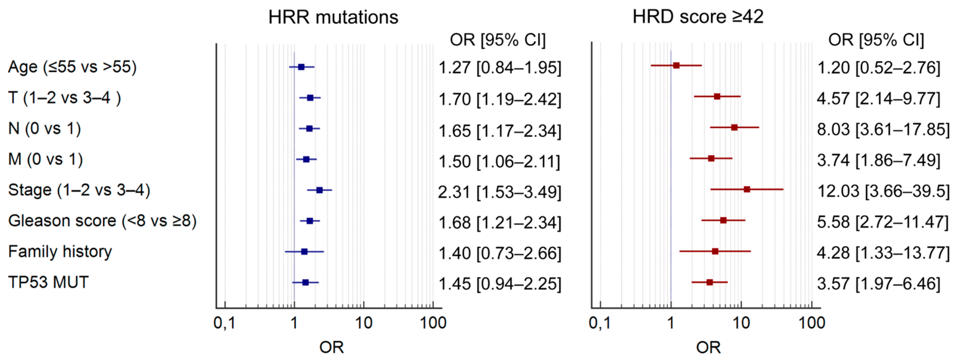 - Olmos, D.; Lorente, D.; Jambrina, A.; Tello-Velasco, D.; Ovejero-Sánchez, M.; Gonzalez-Ginel, I.; Romero-Laorden, N.; Nunes-Carneiro, D.; Balongo, M.; Gutierrez-Pecharromán, A.M.; et al. BRCA1/2 and homologous recombination repair alterations in high- and low-volume metastatic hormone-sensitive prostate cancer: Prevalence and impact on outcomes. Ann. Oncol. 2025, 36, 1190–1202. [Google Scholar] [CrossRef]