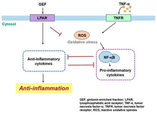 - Chei, S.; Song, J.H.; Oh, H.J.; Lee, K.; Jin, H.; Choi, S.H.; Nah, S.Y.; Lee, B.Y. Gintonin-enriched fraction suppresses heat stress-induced inflammation through LPA receptor. Molecules 2020, 25, 1019. [Google Scholar] [CrossRef] [PubMed]