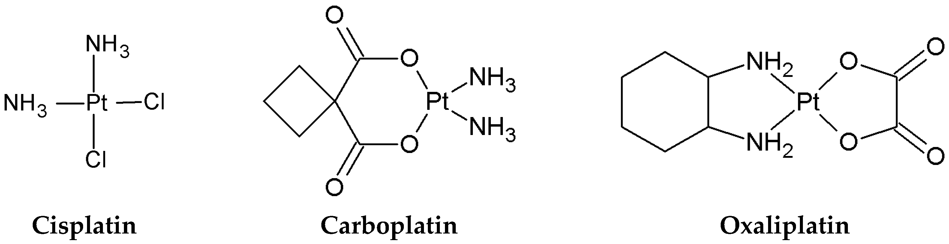- Platinum-based compounds: Cisplatin (98% purity) from Angene (Nanjing, Chine); Carboplatin (98% purity) from TCI (Japan); and Oxaliplatin (98% purity) from POL-AURA (Poland).
