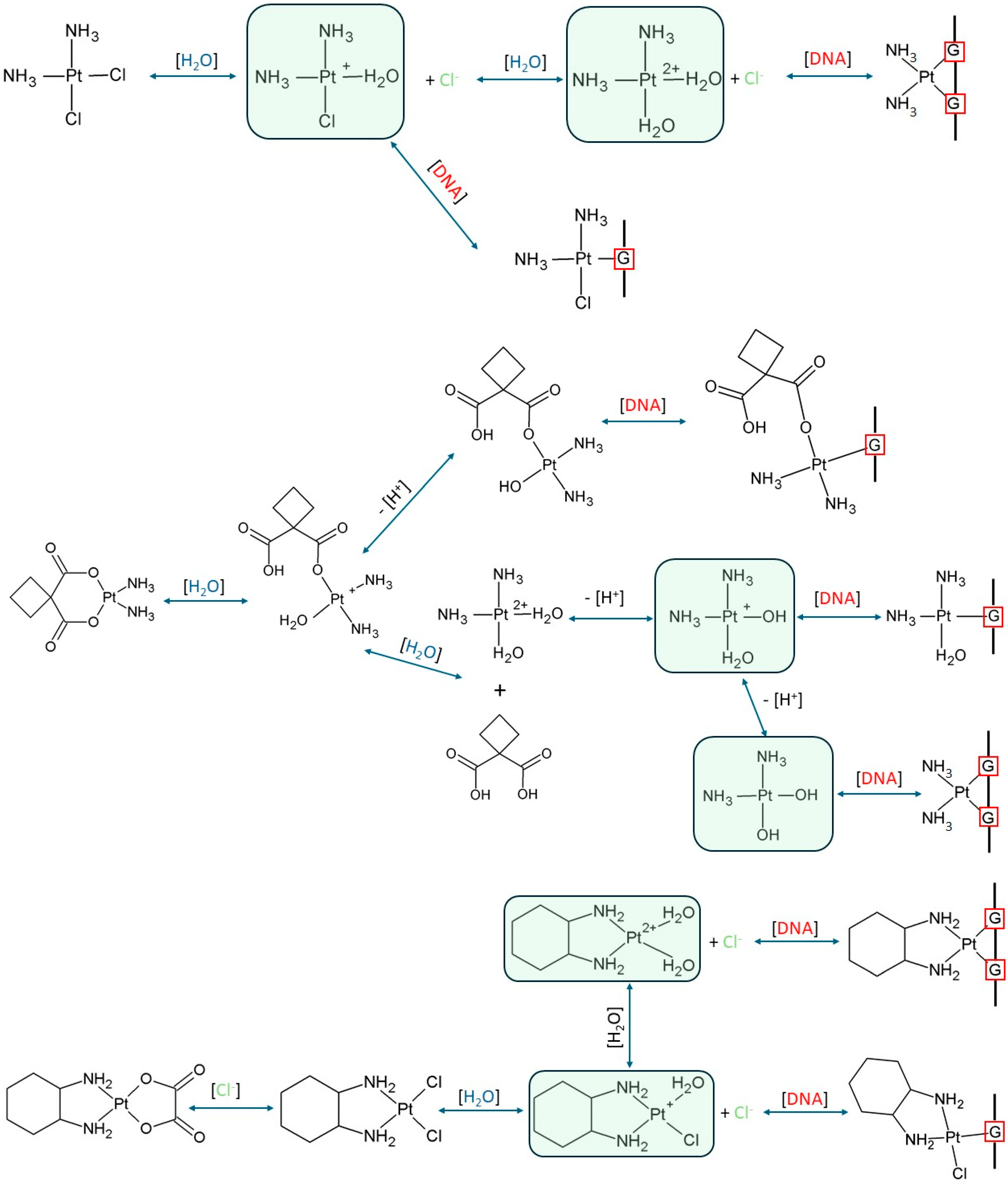 - Rosenberg, B.; Vancamp, L.; Trosko, J.E.; Mansour, V.H. Platinum Compounds: A New Class of Potent Antitumour Agents. Nature 1969, 222, 385–386. [Google Scholar] [CrossRef] [PubMed]