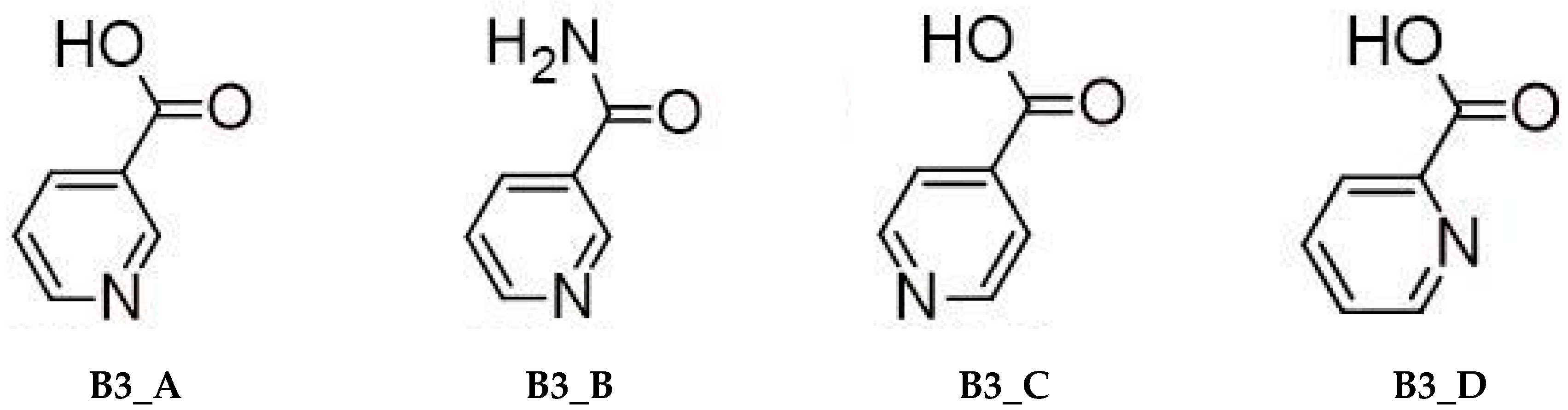 - Nicotinic acid (3-pyridinecarboxylic acid, B3_A).
